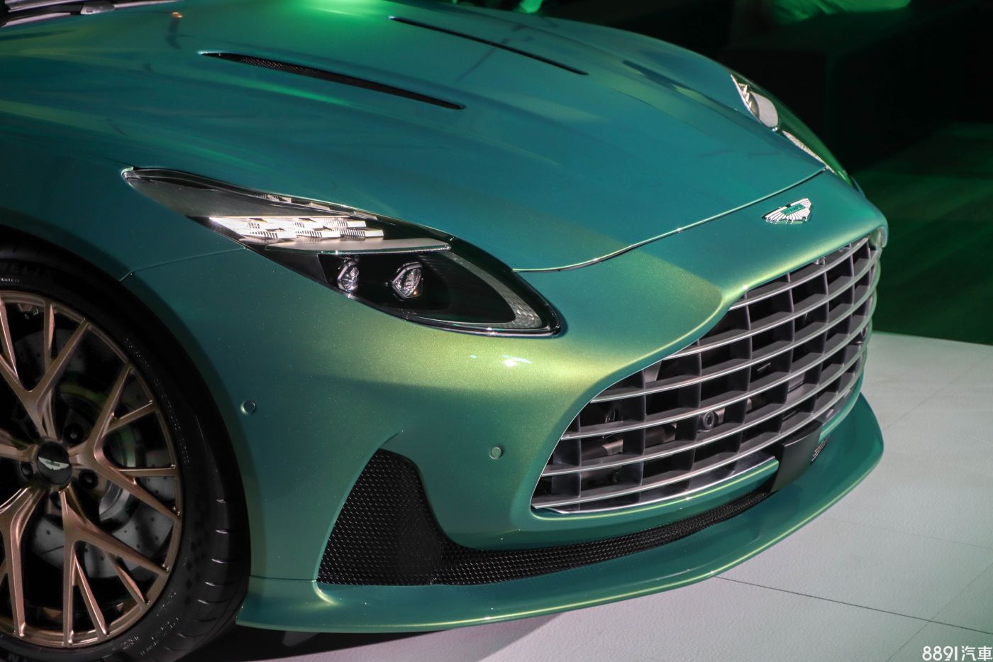 作為DB11的後繼車、也是特別選在Aston Martin DB車系誕生第75年而生的DB12,依舊以家族化水箱護罩與犀利頭燈組演繹品牌一貫風格,但凸形水箱罩明顯放大加寬,搭配與前保桿兩側進氣口整合的前氣壩、犀利的前下擾流,張力確實更勝DB11。