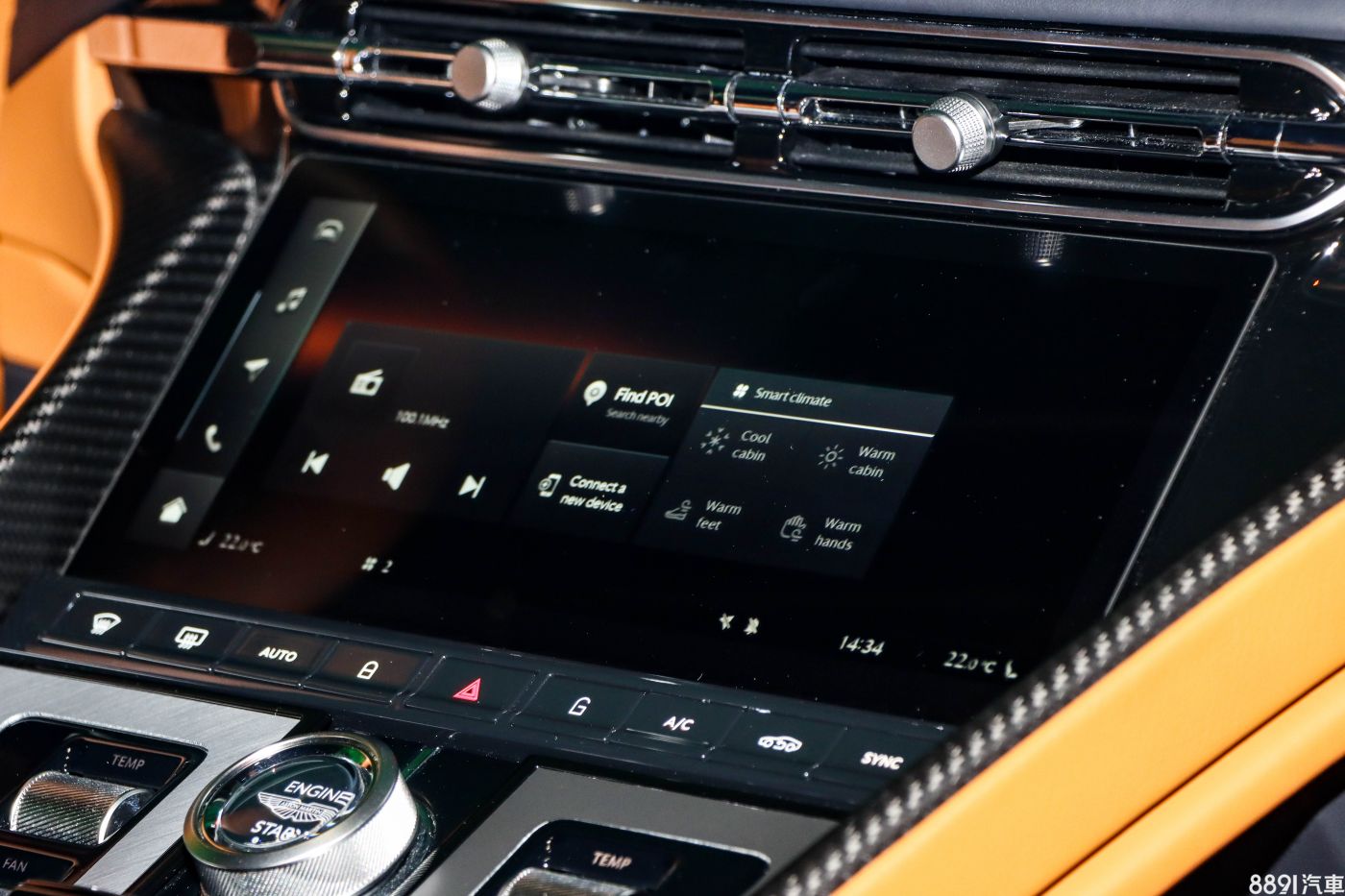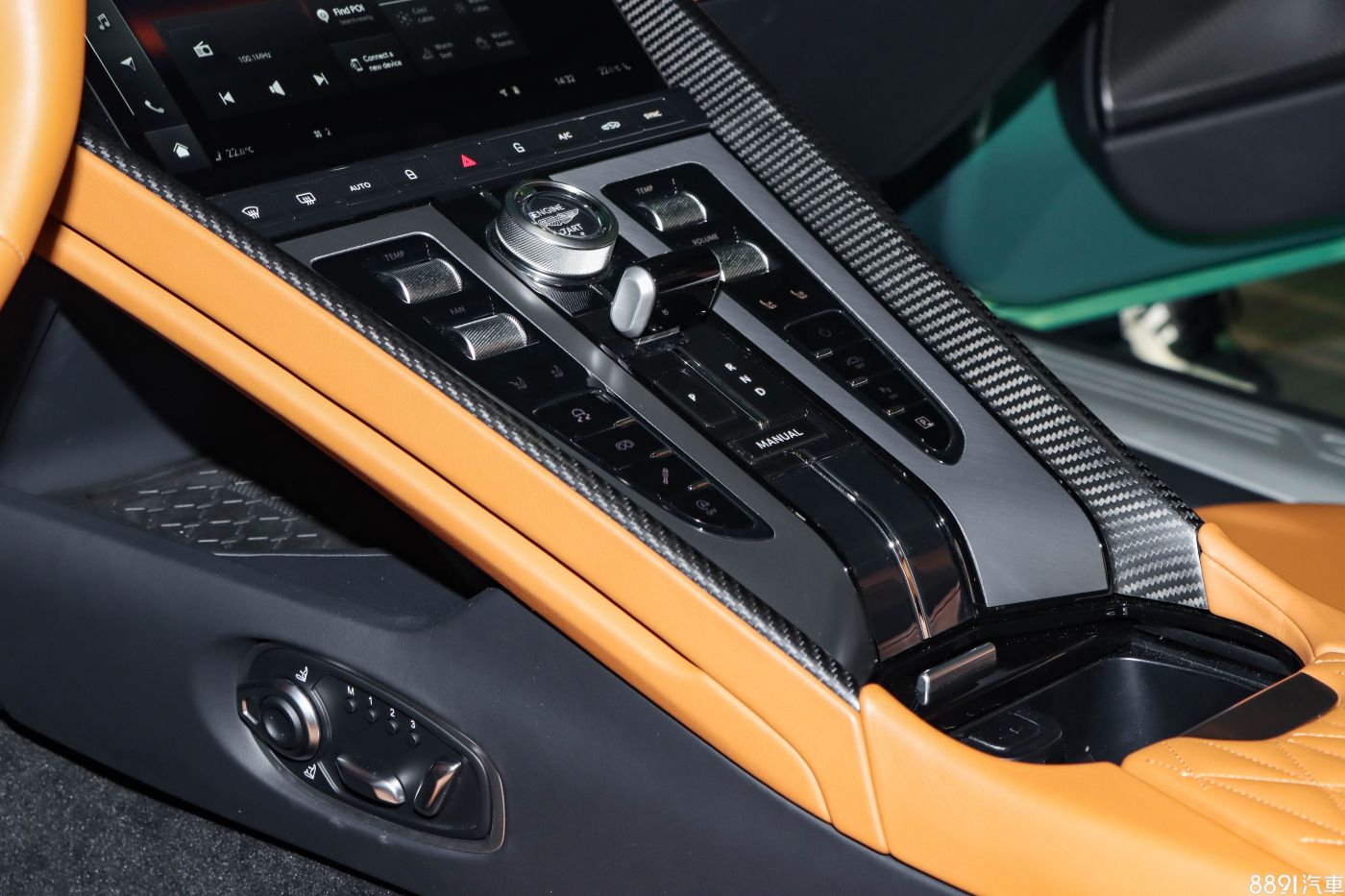 中央鞍座也和DB11有著極大的不同,中央為引擎啟動鈕與駕駛模式切換鈕,下方為撥桿式排檔,兩側則是用以控制空調、懸吊、排氣閥門等按鍵。