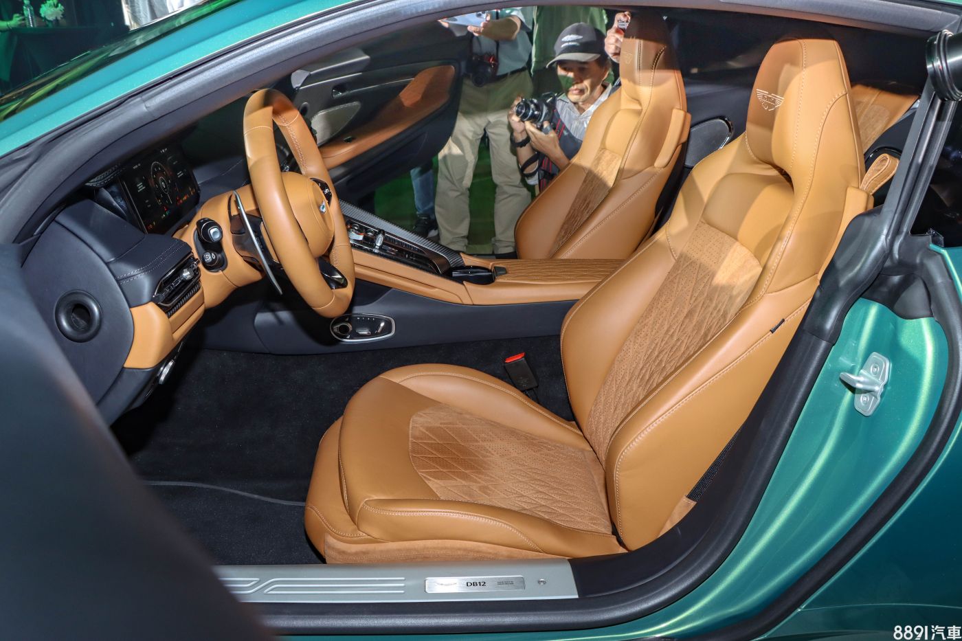 DB12依舊為2+2座設定,展示車選用了運動化座椅,支援十六向電調、加熱、通風功能,還提供碳纖維跑車化座椅可選配。國內並將ACC、AEB、車道維持輔助、盲點偵測、號誌辨識輔助、後方車側警示等主動安全科技列為標配。