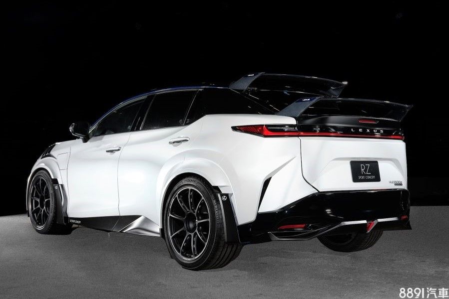 RZ Sport概念車是以品牌純電休旅RZ 450e為基礎進行改裝,外觀採用獨特的黑白雙色塗裝,搭配更具侵略性的保桿造型、大型雙層尾翼,車頭前蓋及葉子板均追加散熱孔,且為了對應加寬、加大的圈胎尺碼,輪拱也改為寬體,搭配比標準版車高降低35mm的運動化懸吊,視覺上十分低趴、戰鬥氣息濃厚。