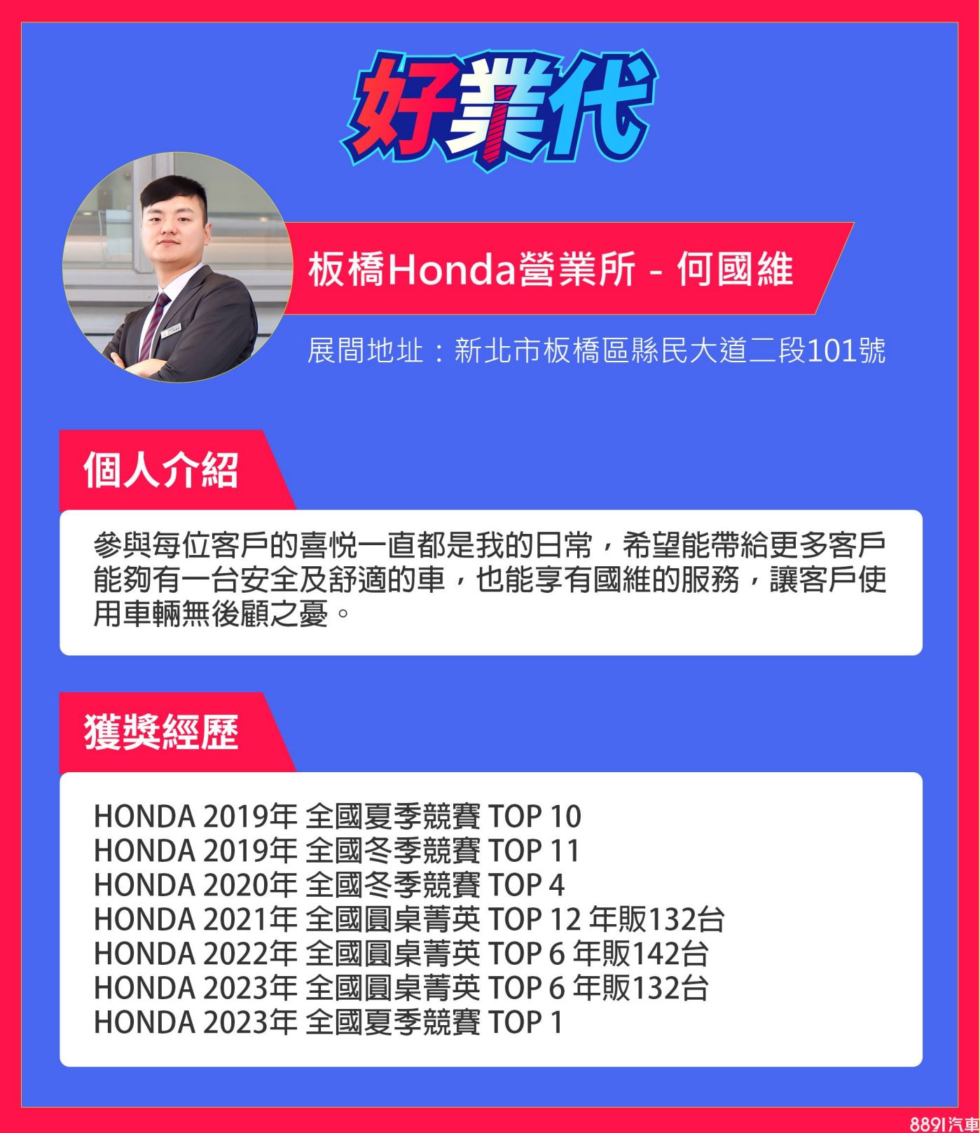 是什麼能讓在台販售車型較少的本田業代,達成年年銷售破百、五年累計500台以上成績?就讓「8891精選業代」何國維告訴你!