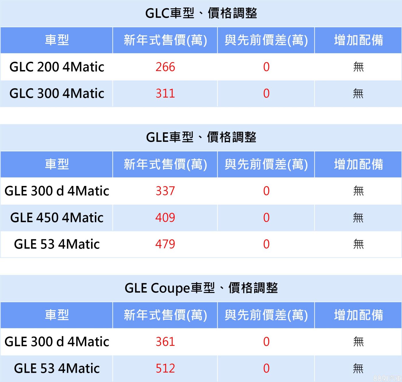 除了上述車系外,大改款GLC、小改款GLE和GLE Coupe,也有望入列首波新年式導入車型當中,不過由於三款車系都才上市不久,新年式仍將維持既有售價和配備規格持續供應。