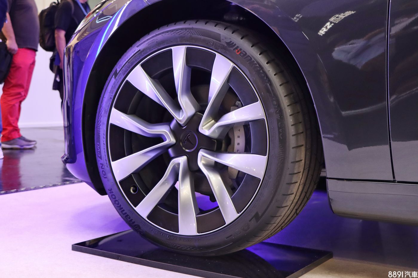 新式樣鋁圈造型一眼望去和舊款有異曲同工之妙,但設計更富凹凸有致的線條感,展示車搭載19吋款,配胎為235/40R19的Hankook iON evo電動車專用胎。