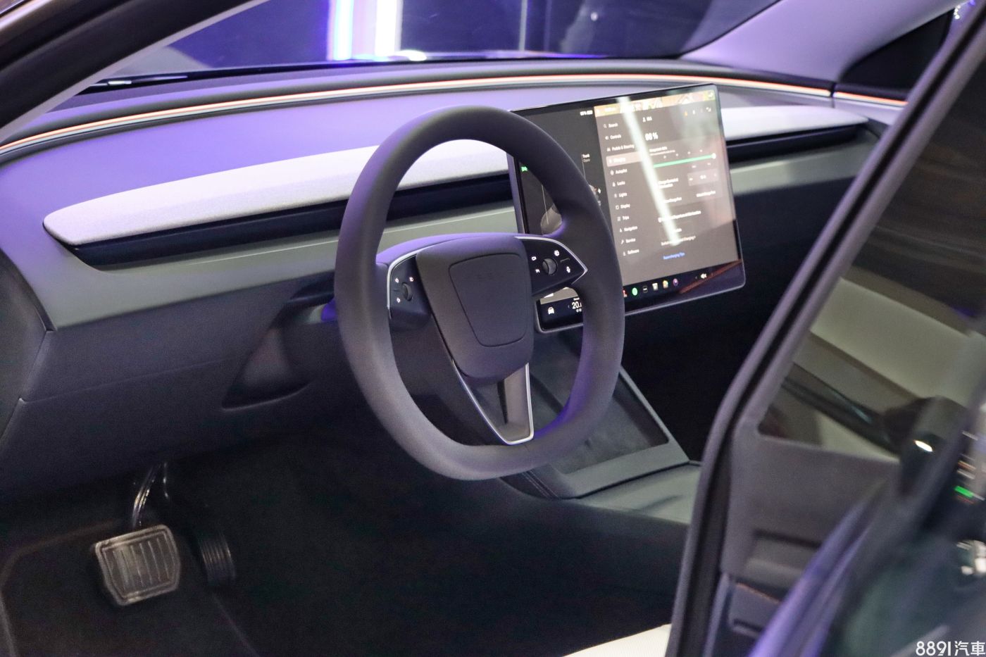 新車車室比起之前更「簡單」了,一眼望去除了新式樣方向盤上的觸控鍵和滾輪,幾乎可用「一片空曠」來形容內裝將傳統按鍵數量、降到不能再低的程度。由於取消了先前位於方向盤右後方的排檔撥桿,若想換檔就是比照Model S和Model X,透過中控螢幕進行,為了「以防萬一」,小改款Model 3同樣保有實體P、R、N、D檔位鍵,位置在車內後視鏡上方。