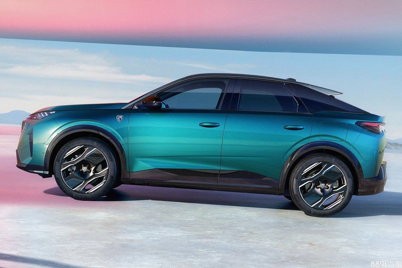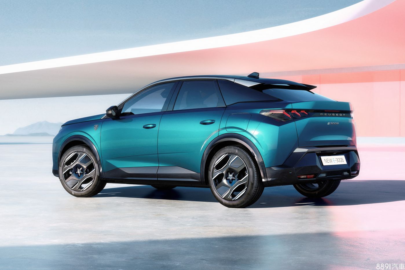 從車側望去,可以很明顯感受e-3008的斜背身形,搭配車頂擾流尾翼以及尾門上的小鴨尾,營造出濃濃的運動感。尾燈採用家族特色的獅爪造型,其中GT版本在光形上會更加立體。