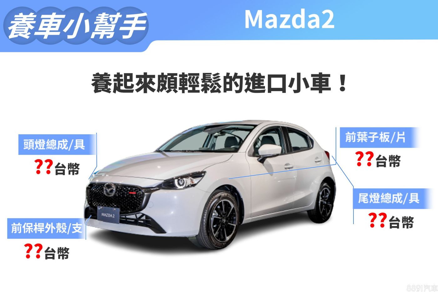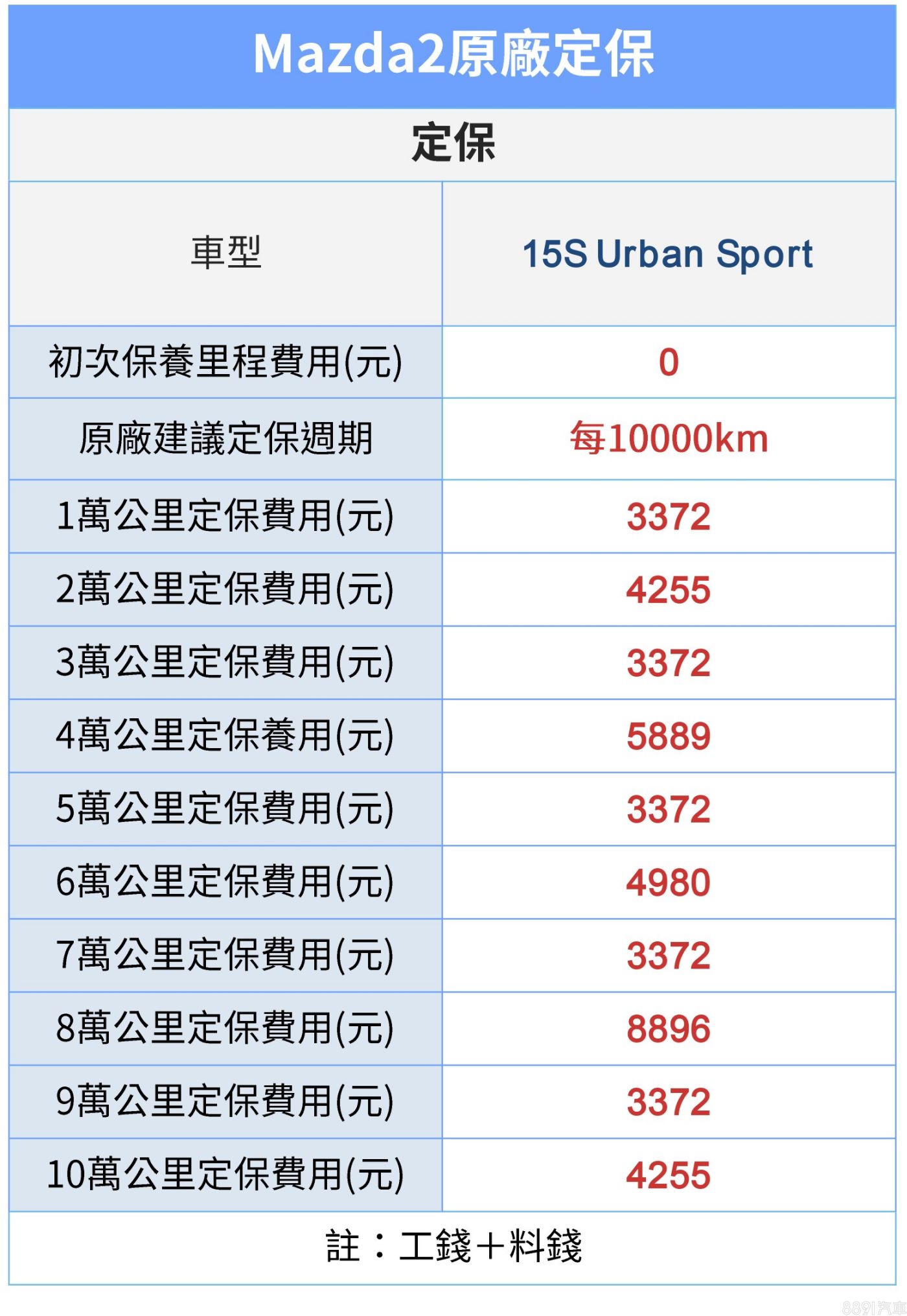 在台上市的二度小改Mazda2,縮減為單一車型設定,開價78.9萬,不過由於主要是針對內外觀造型做調整,動力並沒有改變,以原廠保修來說,大多保養在5000元內都能解決,只有在8萬km時會做比較大幅度的保養作業,但也壓在萬元以內,整體花費與國產小車差不多。