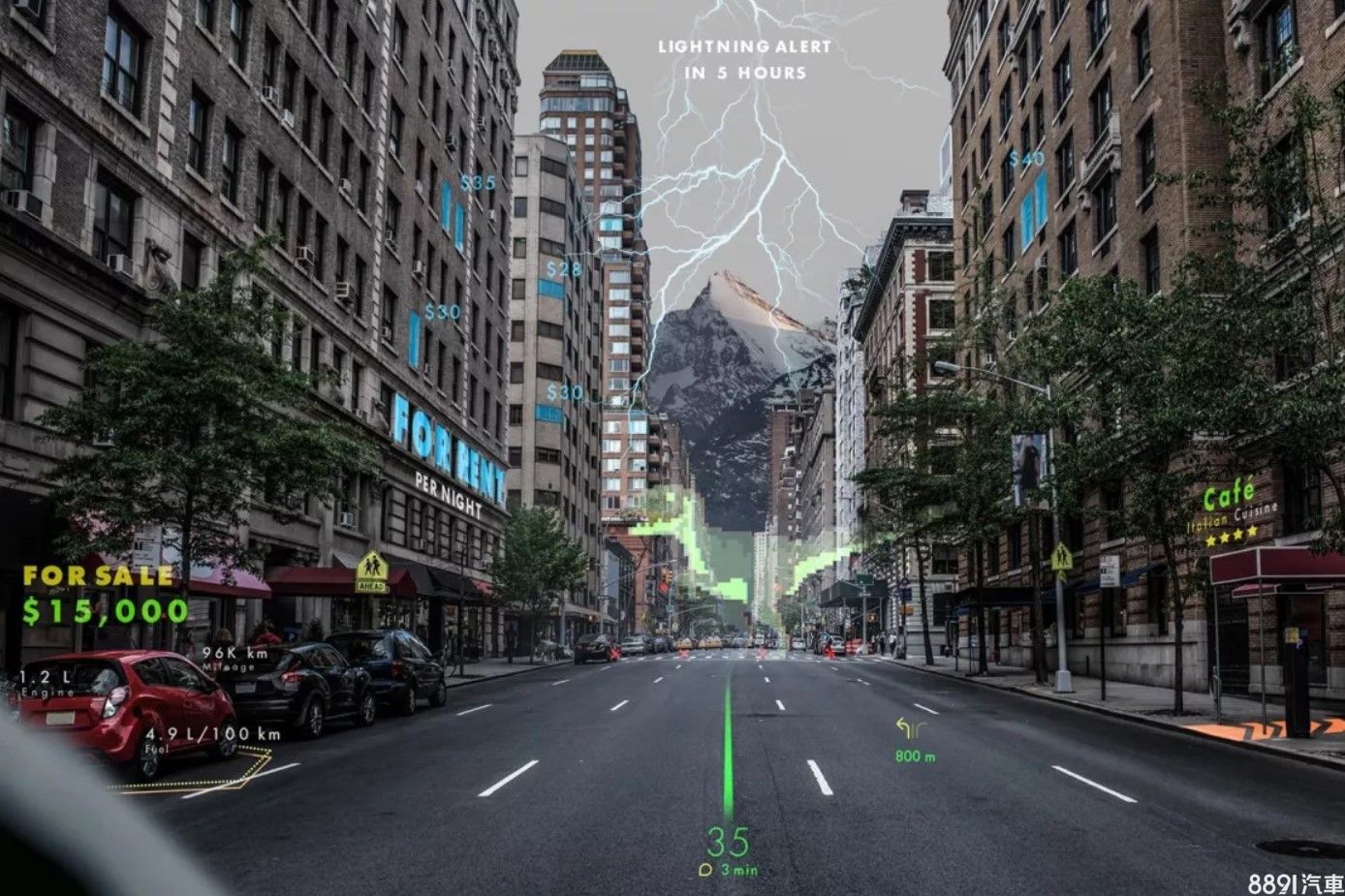 車用的HUD抬頭顯示器已經很普及了,隨著科技進步,投射面積越來越大,可以顯示的資訊也越豐富,可是我們幻想,假設可以把整個擋風玻璃都變成投射區域,然後加入現在已經有的AR實境功能,除了顯示導航指引,在開啟主動安全輔助系統的時候,一些車距、車道偵測、行人偵測等資訊也可以清楚的Show在上頭,要是更進階一點,開在路上,就能標示出一些商家資訊,譬如加油站(今日油價)、停車場與剩餘車位、下個休息站還有多遠等等,好像蠻方便的吧!