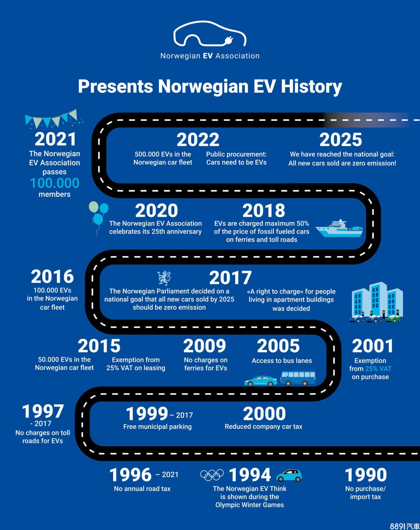 為了推廣電動車,挪威政府自1990年起陸續推出一系列的激勵政策,大致可以分成「稅收減免」、「使用者補貼」以及「便民措施」。除了鼓勵民眾購車之外,也包含後續的使用配套、公共建設等獎勵辦法,改善電動車的使用者體驗及環境。