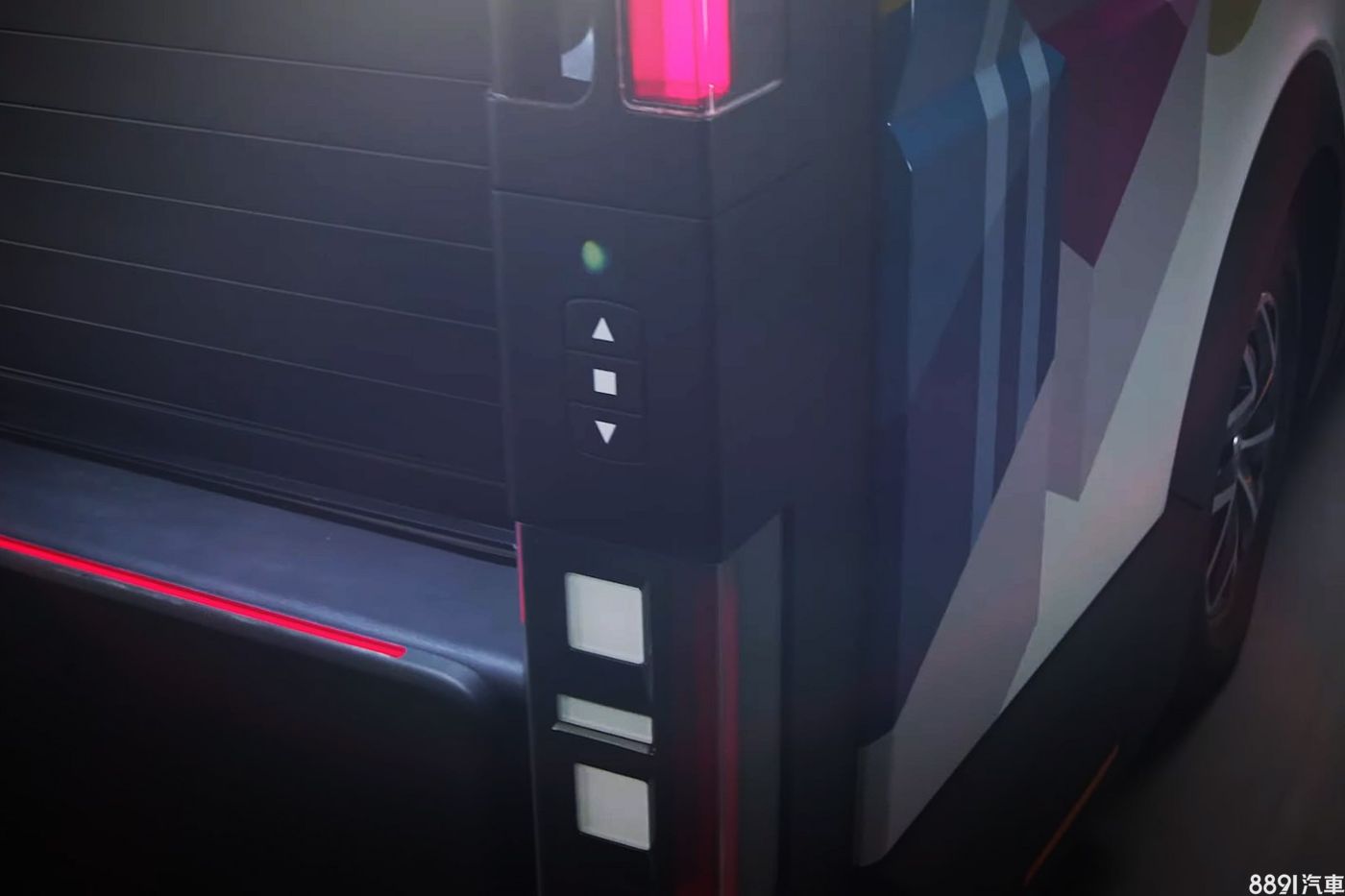 另一個角度可見尾門右側具備升降按鍵,藉此推測Model N尾門可能採電動啟閉,門檻外側並配備可收折踏板,方便貨物載卸使用。