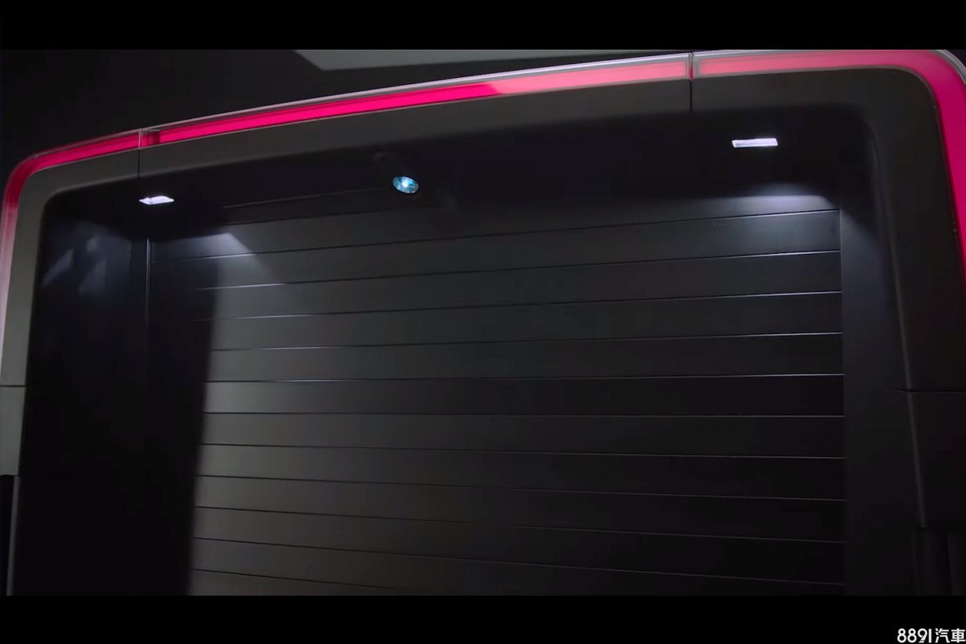 或許為求載貨空間最大化,車尾造型看起來相當方正,尾門採捲簾設計,尾燈則沿著尾門門框鑲嵌其中,並於頂部設有照明燈具。