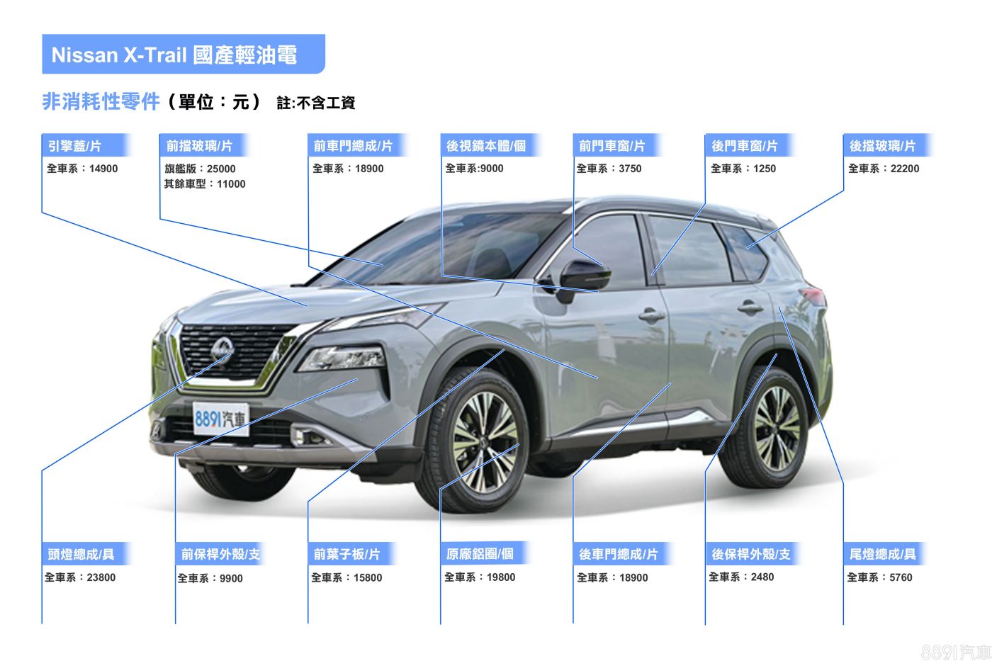 相較e-Power車型的「進口價」,輕油電車型在非消耗性零件部分,可說是全面展現國產化優勢,包含全車玻璃、後視鏡、燈組及後保桿外殼等處,更換價格對比進口車型都有明顯壓下來,部分項目價差甚至可達兩倍以上,降幅十分有感!