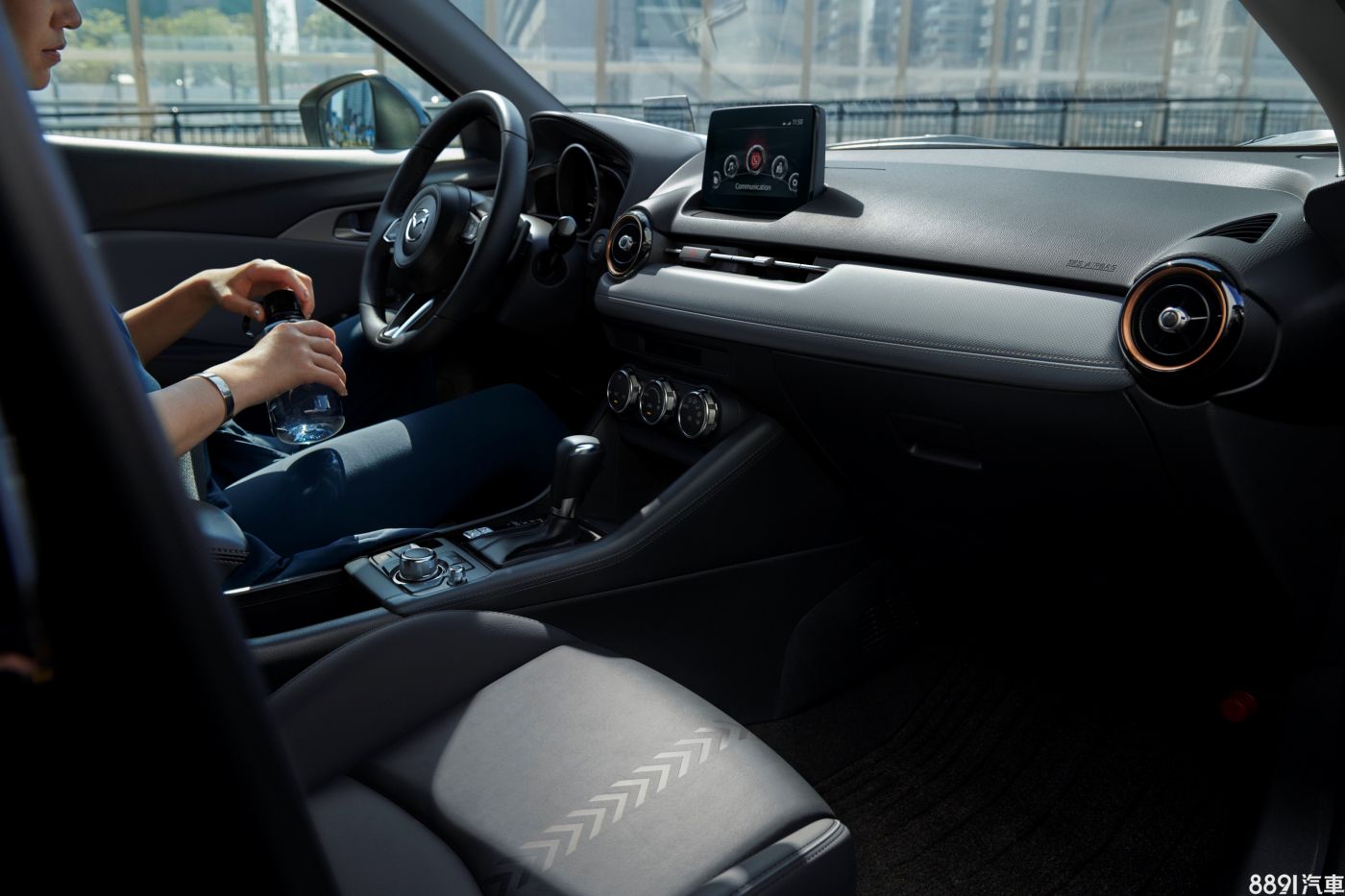 此外內裝儀錶台也換上藍黑色調的包覆材質,並於空調出風口加入銅色飾條,同時座椅也改用原廠稱為「Regane」的仿麂皮人造皮革包覆,提升表面的止滑效果,椅面上特別印有「箭頭」圖案,來強調其獨特性。