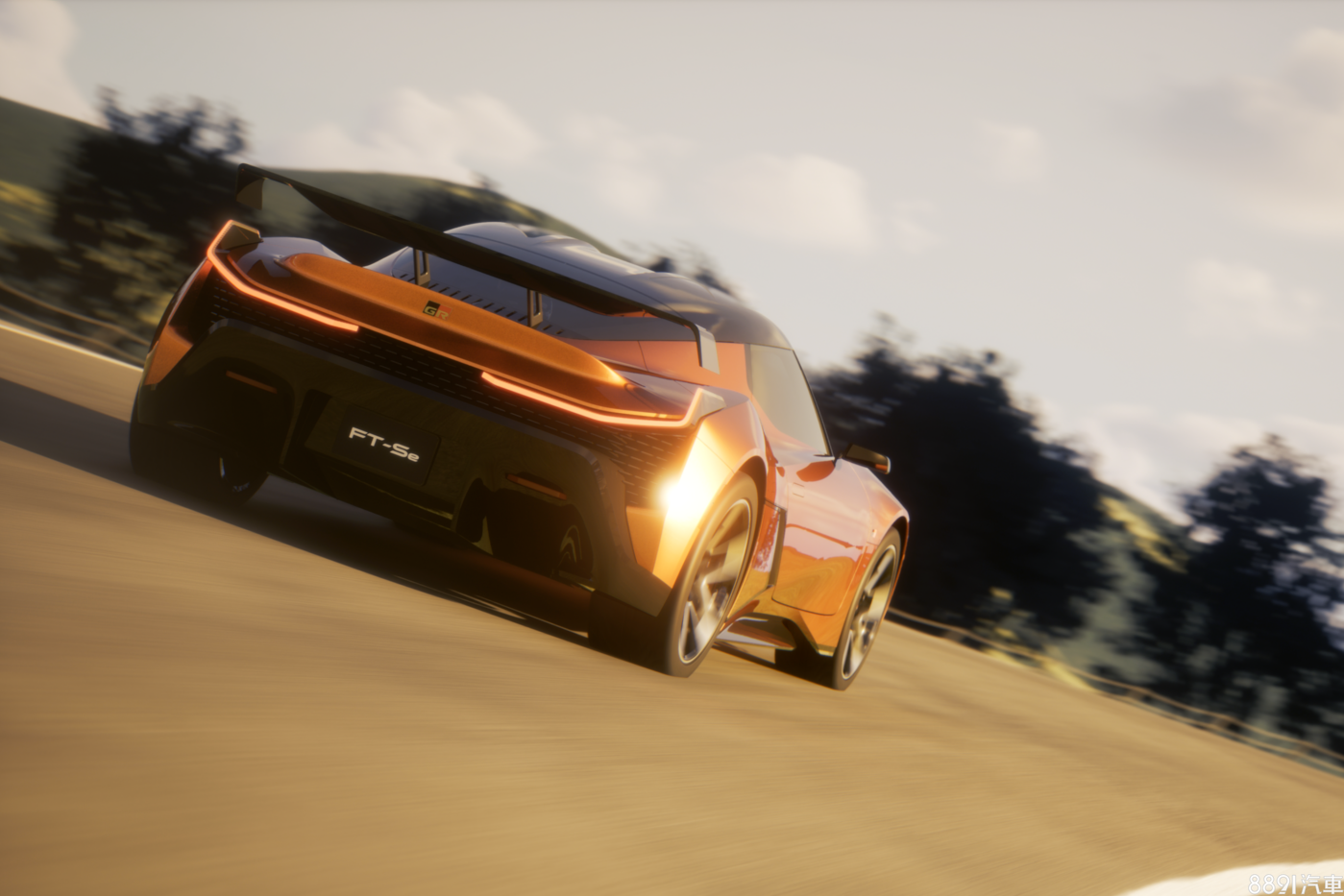 性能味十足的FT-Se,從外觀就可看出新作為一款純電跑車,直立式頭燈組加上碩大的氣壩使其侵略性十足,斜背設計加上挺翹的車尾、大尾翼,以及後下分流氣,更是競技感濃郁。
