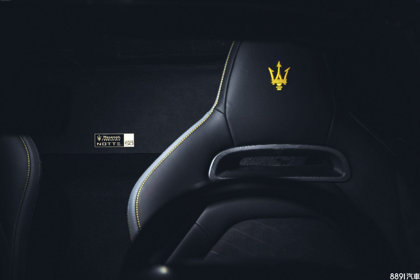 座艙延續特色主題,以黑色為基調,搭配黃色縫線勾勒內裝輪廓,兩張電動可調跑車化座椅則採Alcantara人造麂皮包覆,椅面並採黑/灰雙色拼接而成,兩張座椅間更鑲嵌有「UNA DI 50」的專屬銘牌,凸顯MC20 Notte的限量身分。