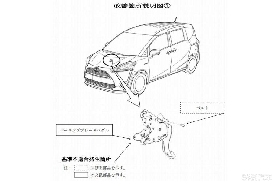 另外也針對當地Sienta所採用的腳踏式駐車煞車發出召回,由於固定踏板的螺栓鎖固扭力值不正確,長久使用可能會出現鬆動甚至脫落的情形,最嚴重可能導致駐車煞車失效,日本豐田表示,這波召回活動受影響的包含2015~2021年所生產之車型,共計約有58萬輛。