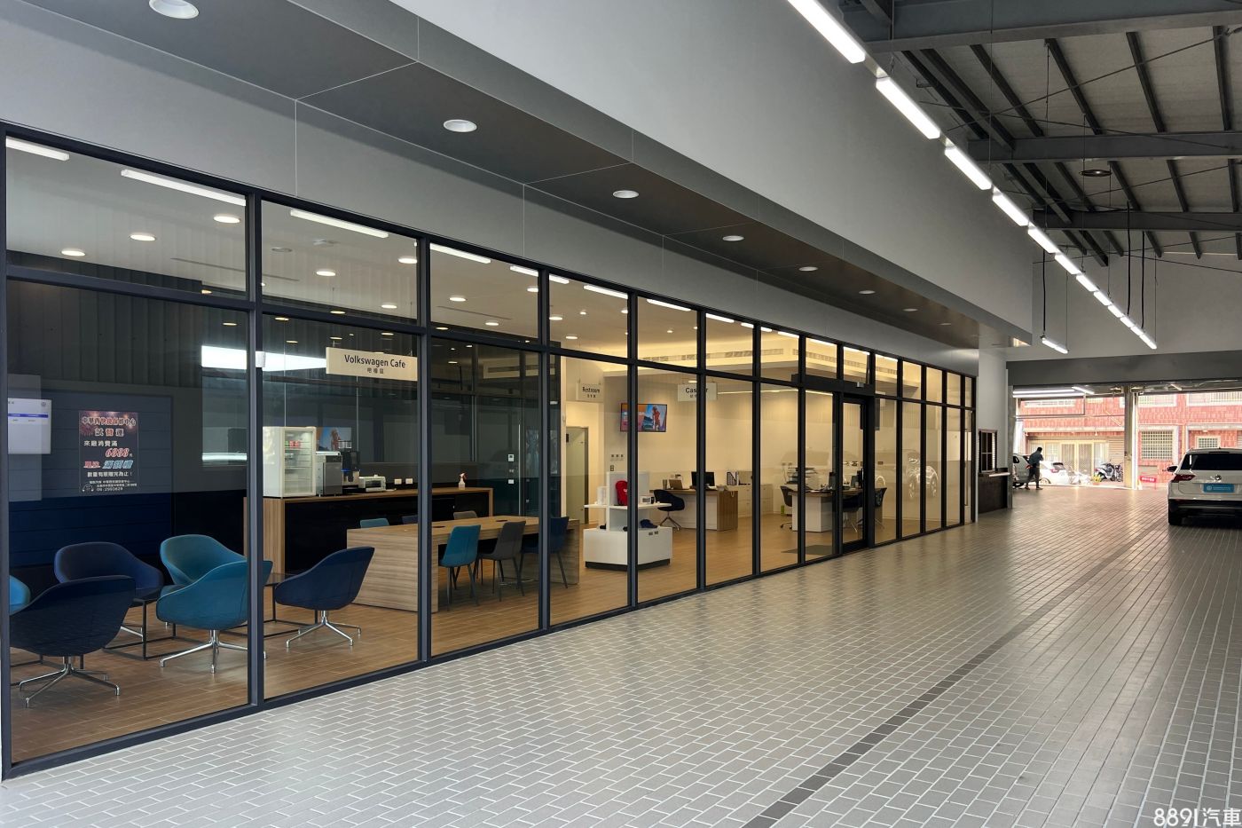 福斯台南中華西銘峰快捷保修中心佔地總計250坪,配有4個工作車位與專屬交車區,室內採用活潑鮮艷的設計語彙及原木傢俱,大片落地窗引進自然光線,同時導入數位化品牌體驗,設有大型電子看板,顯示車輛保養進度。此外,車主也可至專屬Volkswagen Cafe,享用特製餐點、飲品,更可選購原廠精品。