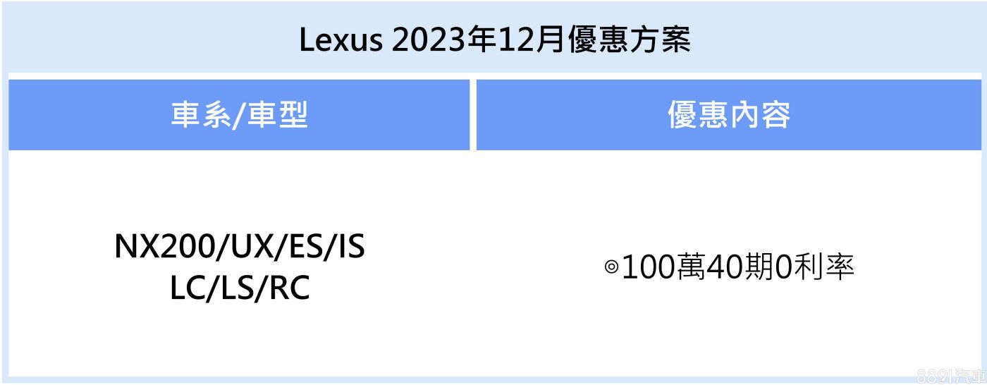 除了RX與LM車系外,Lexus本月持續針對全車系推出貸款優惠,提供100萬40期0利率分期專案,包含熱銷車型NX200也在促銷陣容內。