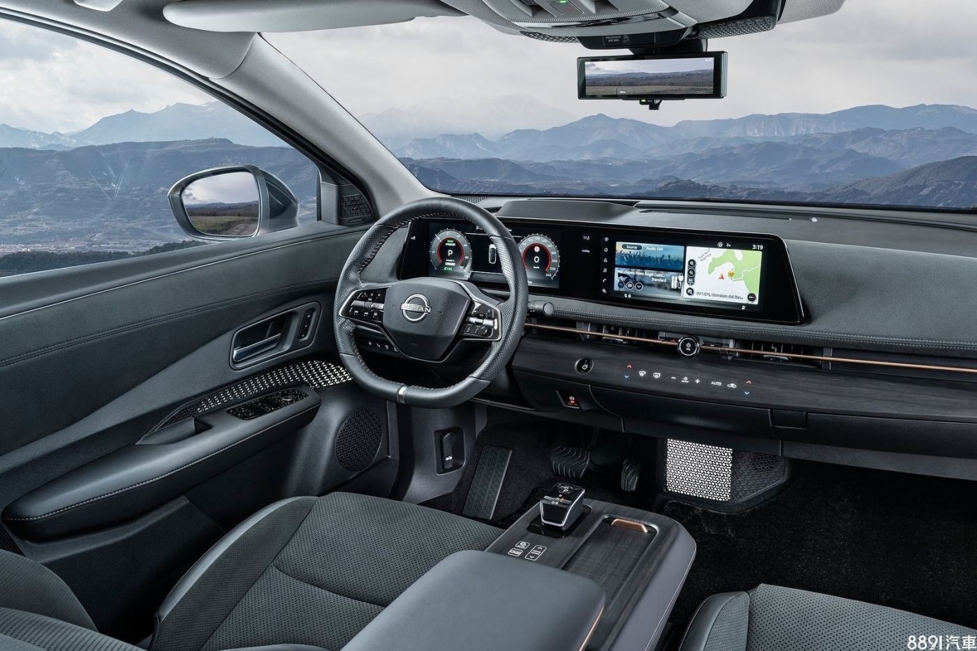 內裝採用水平線條鋪陳,並以大量觸控式螢幕取代傳統按鍵,看上去簡潔清爽。參考海外配置,Ariya搭載雙12.3吋螢幕,其中多媒體系統支援智能語音助理,也可透過專屬手機App,查看車輛資訊,或設定充電提醒、提前開啟空調等。