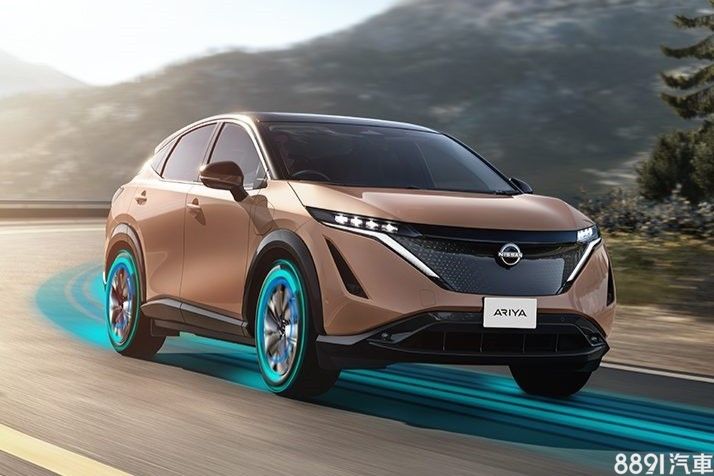 Ariya採用Nissan-Renault-Mitsubishi聯盟的全新EV平台打造,依官方公布數據,車身尺碼為4595×1850×1655mm、軸距2775mm,定位是一款純電中型休旅,自B柱下斜的車頂線條融入跑旅風格,搭配寬大的仿水箱護罩、銳利的LED頭尾燈等特徵,給人十分前衛的視覺印象。