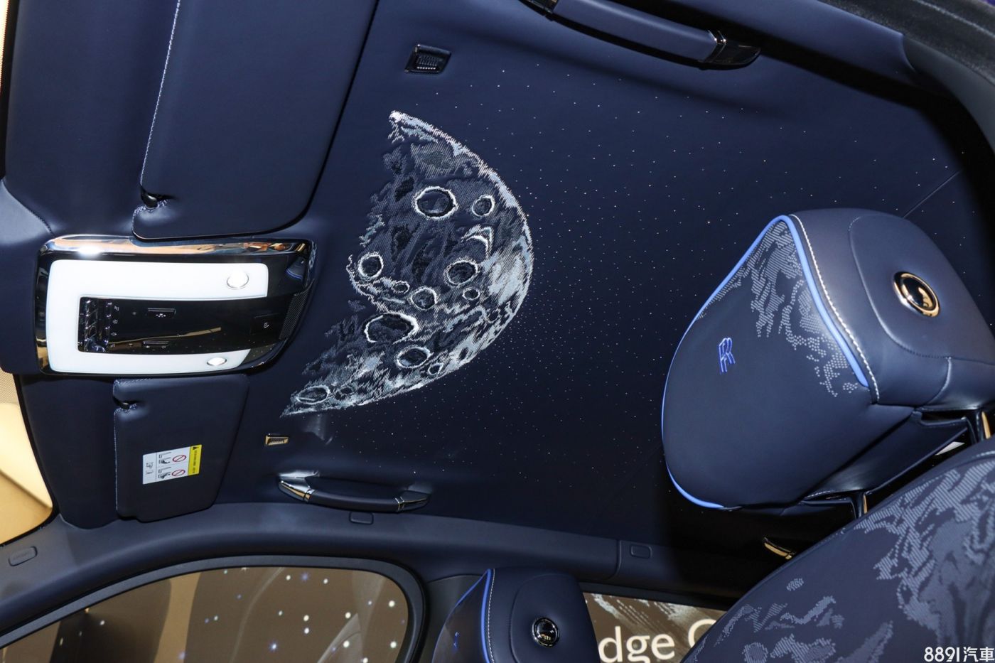 但最具特色的,不外乎是品牌招牌的「星空頂篷」。不僅採1183顆藍色或白色光點,來呈現滿布頭頂的浩瀚星空,頂棚前端更特別為設計了造型立體的月球刺繡,官方並宣稱因月球表面的複雜紋理,光完成這面刺繡月表就得花上2天的時間!