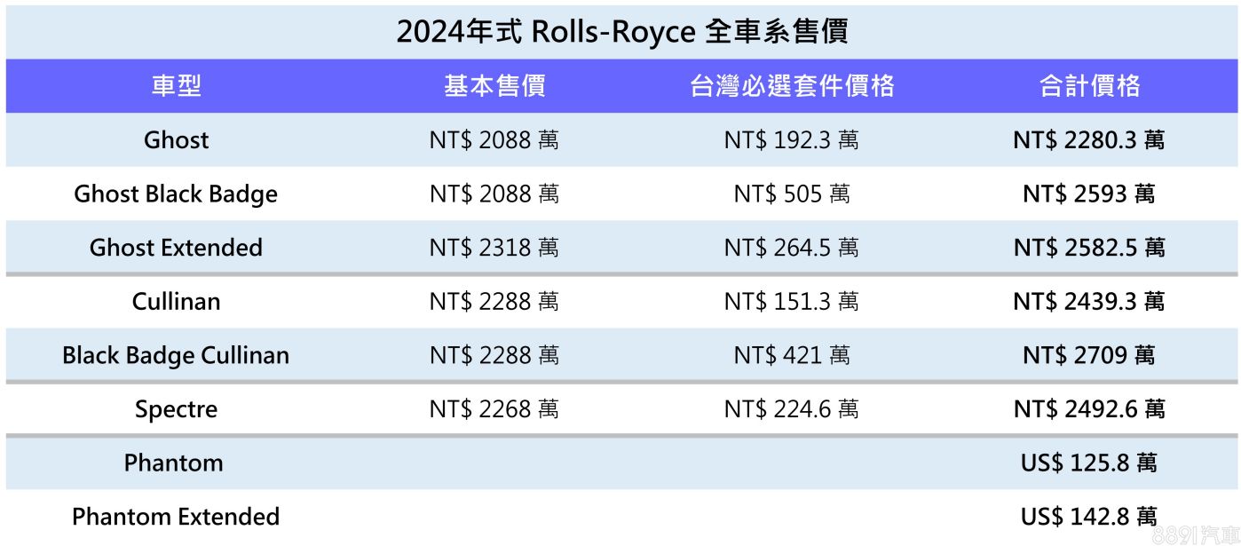 順帶一提,官方也配合Blue Shadow的亮相活動,順勢發布了品牌全車系2024年式車型資訊,除了日前剛在台發表的Spectre純電雙門車系外,其餘車型均針對價格調漲。