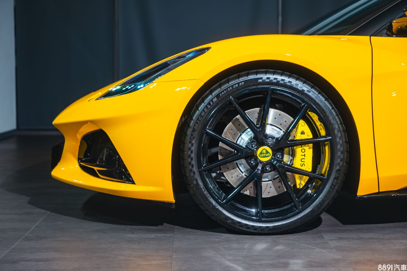 標配20吋鋁圈,由於國內導入款標配有Lotus Drivers Pack套件,配胎為經過品牌認證的Michelin Pilot Sport Cup 2,尺碼則為前245/35R20、後295/30R20。