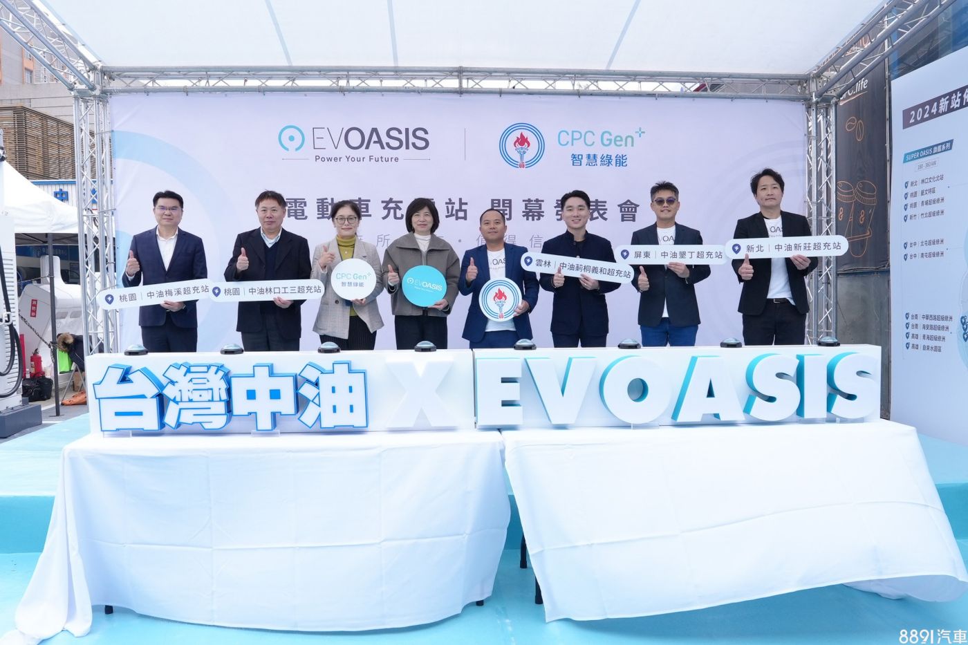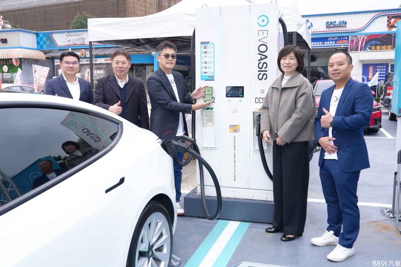 EVOASIS旗下充電裝置支援全品牌車款,且提供多種付款方式,雙方也計畫陸續將完成中油18個直營據點的充電服務,提供共超過70個充電車位,並持續推動加油站轉型升級,打造多元能源補給站。