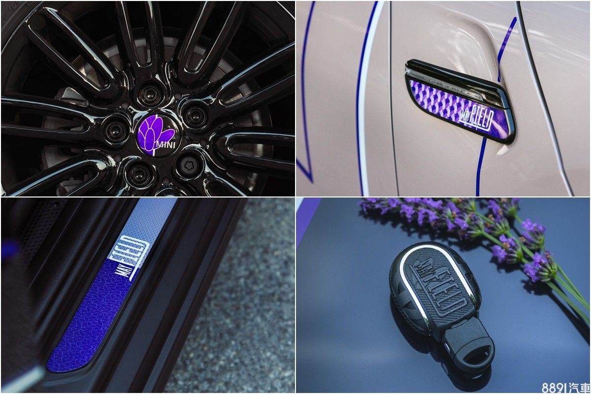 Mini Mayfield Edition分別為兩種車型選用不同的主色調,三門掀背是以「Enigmatic Black」呈現低調高貴的神祕感,而五門掀背則提供「Nanuq White」、「Rooftop Grey」、「Midnight Black」三款車色選擇,均搭配紫色調設計。