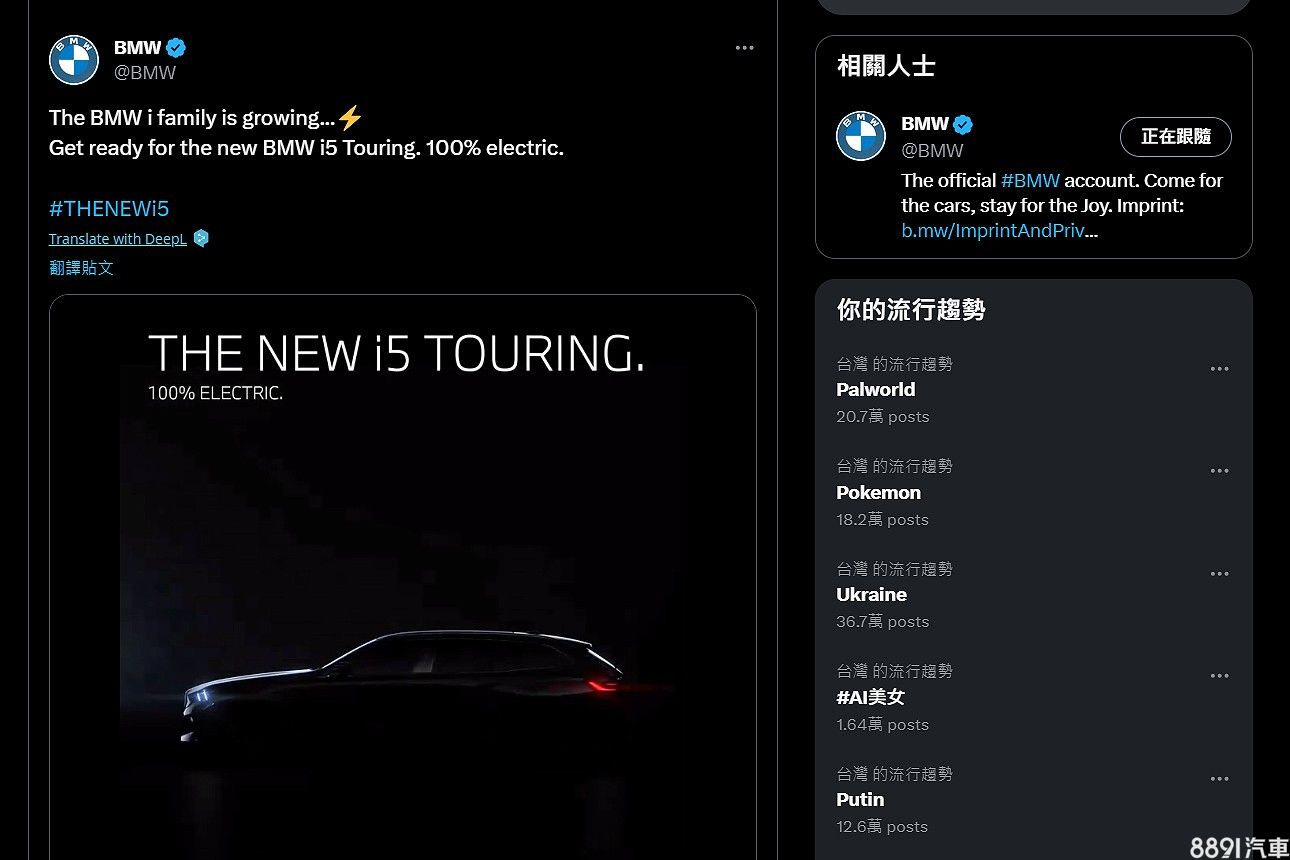 預告短片除了表明「i5 Touring」的正式命名,簡介文案也搭配「100%電動」、閃電符號和「i5」標籤來強調其純電身分,動力則預期比照房車版,供應340hp單馬達後驅的「i5 eDrive40」和601hp雙馬達四驅的「i5 M60 xDrive」可選。