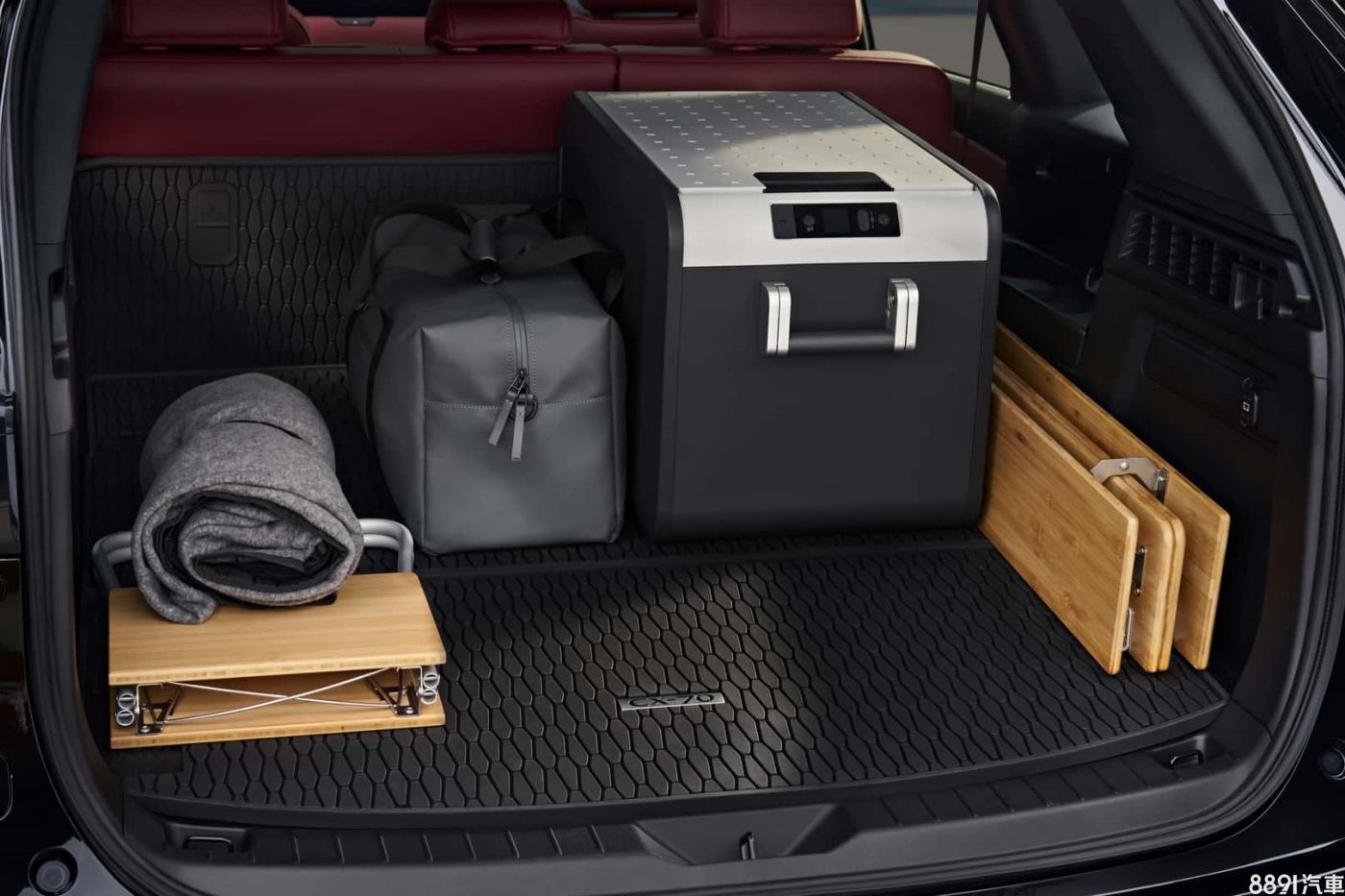 原廠尚未公布CX-70行李廂容量,不過自上圖可見,置物空間寬敞平整,並可透過尾門的按鈕,快速放倒後排座椅,進一步提升置物容積,另外底板下方也設有三個儲物盒可作利用。