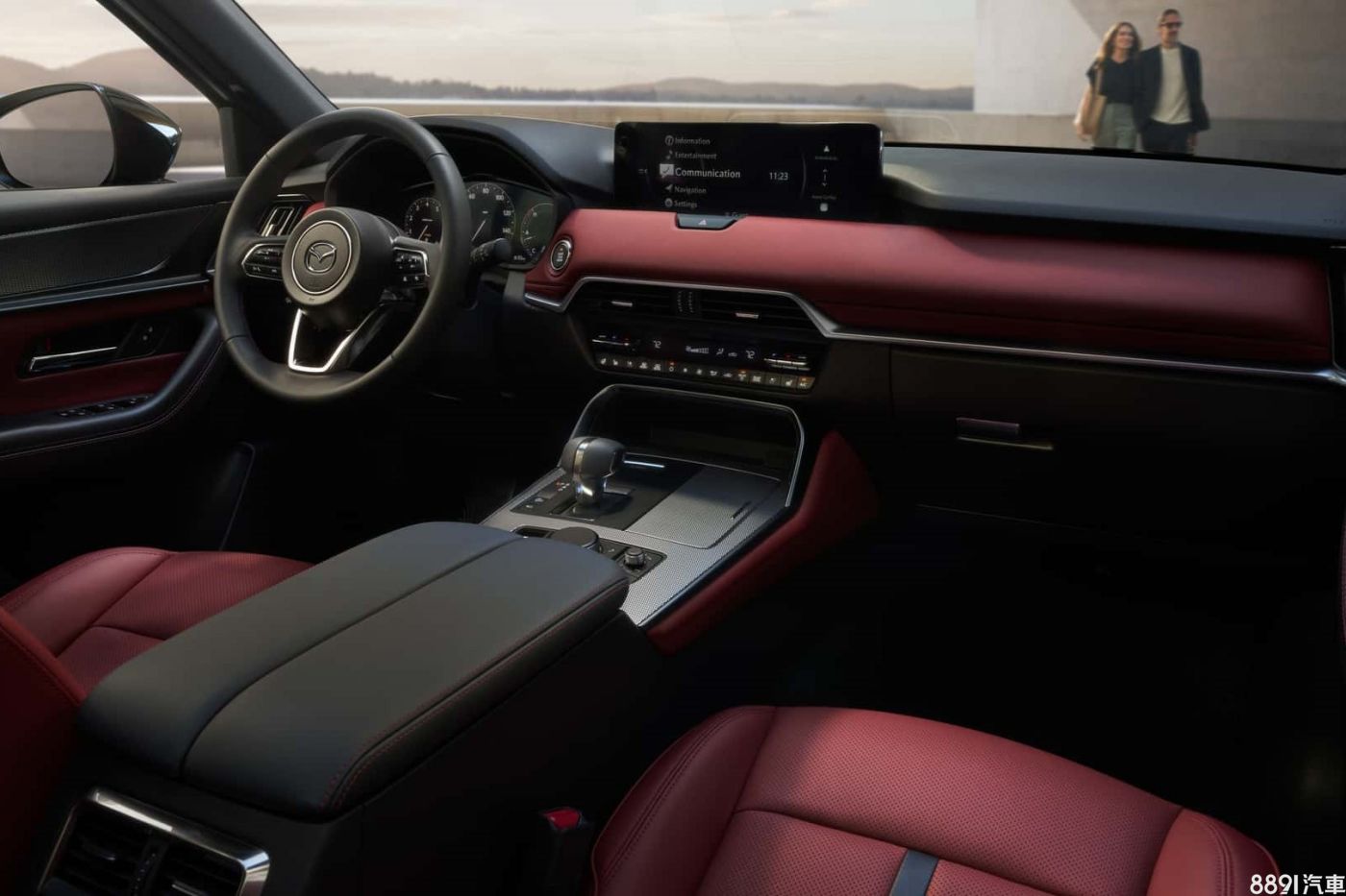 CX-70座艙與CX-60並無二致,以水平線條與方形元素鋪陳,雖然中控台仍保留不少實體按鍵,但看上去並不複雜,車內交錯使用皮質、軟質塑料、霧銀飾條,高規版更運用酒紅色內裝,整體看起來很有質感。