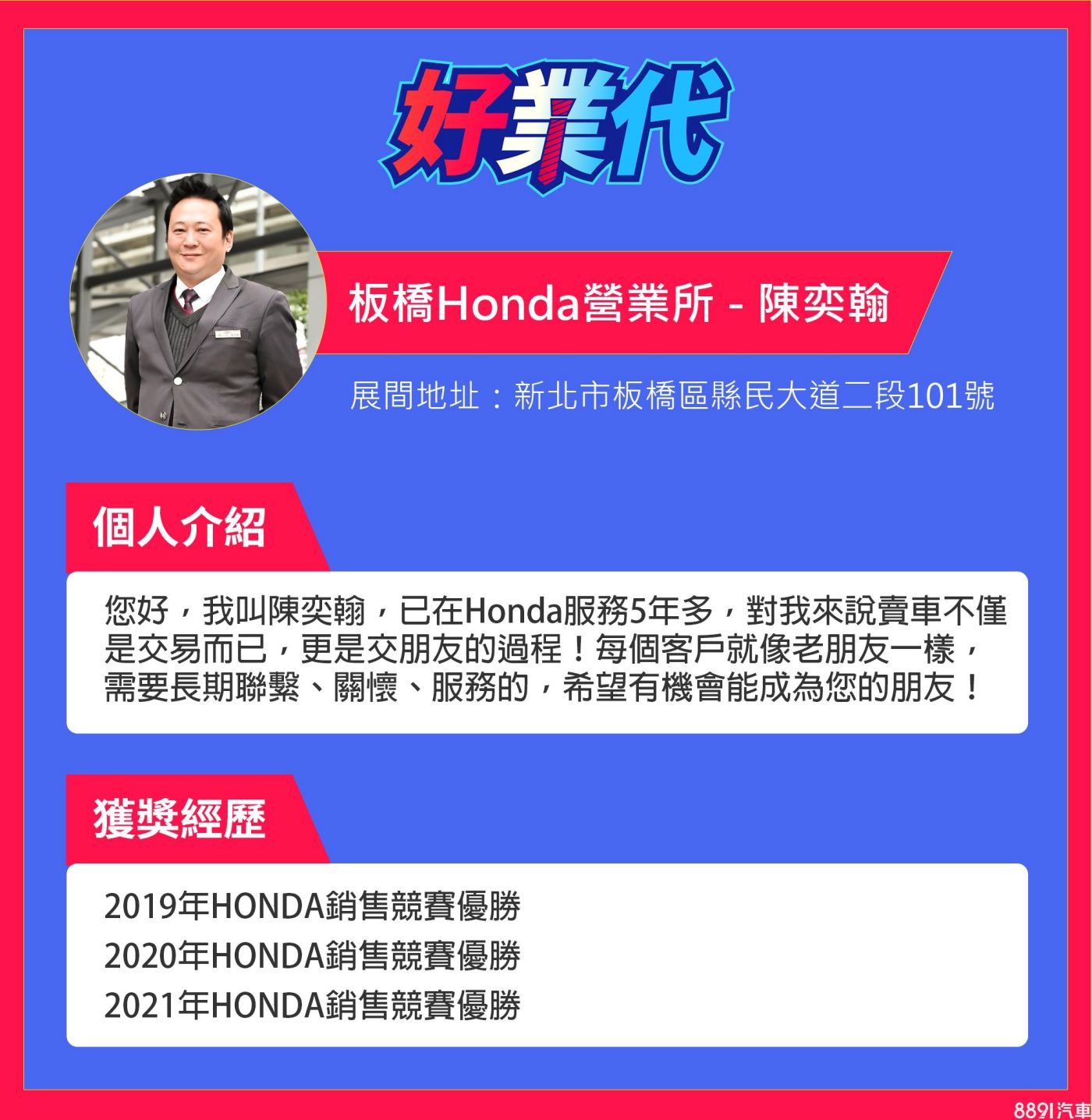 現年44歲的奕翰,進入Honda服務已5年多,39歲時因金融業組織轉型,被迫卸下原有的主管職,來到本田當起第一線銷售的他,相比其他業代多了一分成熟的信賴感,而他也因過去在銀行所累積的深厚基礎,打從新人時期就成為品牌銷售排行榜上的常勝軍!不過奕翰也坦言,賣車確實不若金融業來的穩定,一切收入都得靠自己爭取,而且現在大環境購車習慣改變,展間實體來客數銳減,許多業代紛紛轉為經營線上客群,他自己也不例外,除積極在臉書社群、車版等討論區開發人脈外,還會利用8891業代平台,替自己謀合更多意想不到的客源!