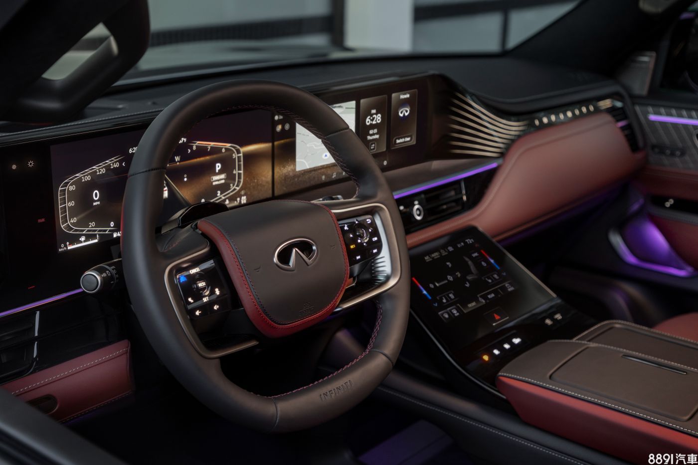 內裝部分QX80保留Infiniti上下雙螢幕的設計元素,但中控台經過重新打造,下方觸控螢幕位置更為傾斜就手,主要負責空調、駕駛模式等車輛細部控制。上方螢幕則與Google合作開發,提供可即時更新的導航圖資與Google語音助理,車主也能透過Google Play下載想要的APP在車輛上運行,提供高度客製化的空間。