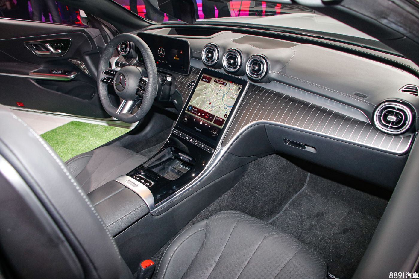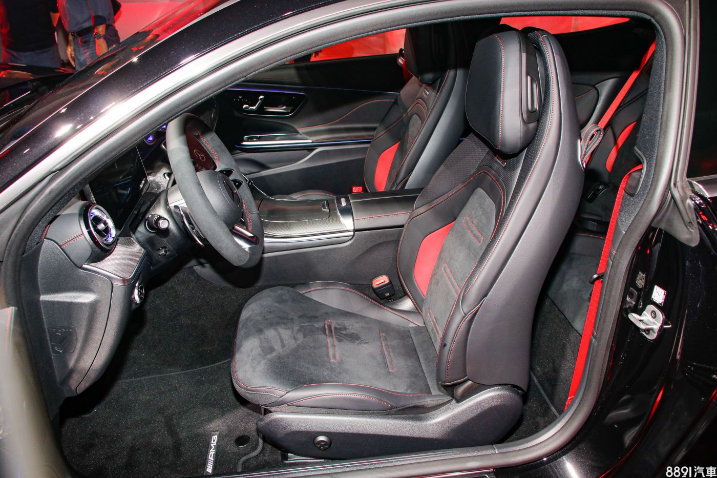 座艙格局與C-Class相似,儀錶台以橫向視覺為主軸,搭配駕駛導向布局,全車系標配12.9吋數位儀錶和11.9吋直立式觸控多媒體系統。非AMG車型標配Nappa真皮平底方向盤,Coupe款座椅採皮質/人造麂皮包覆,敞篷款則為全皮質座椅。