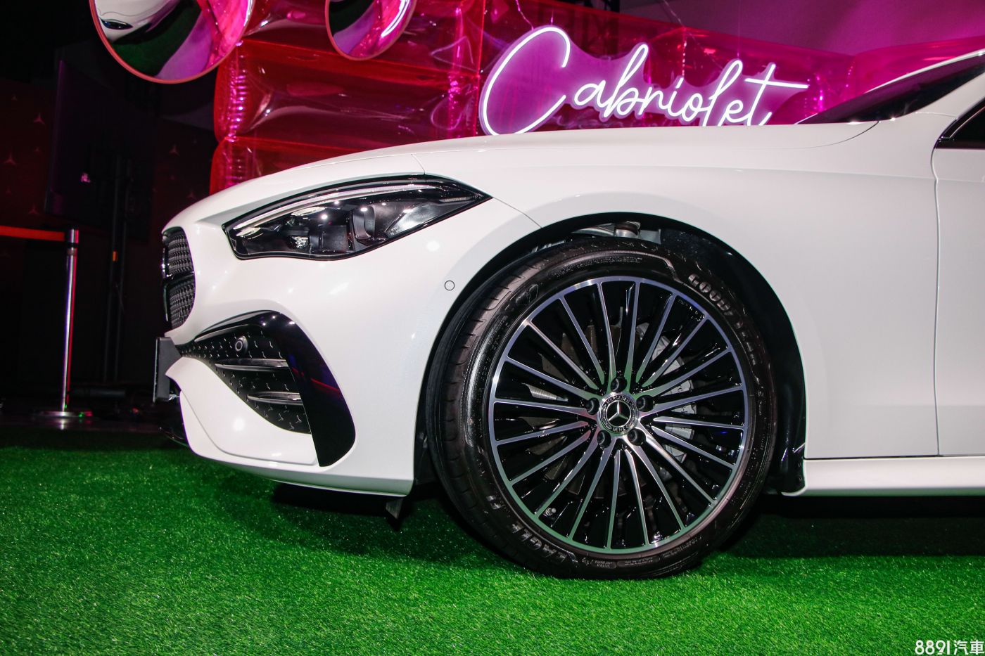 Cabriolet敞篷車型同步登台,少了車頂來修飾輪廓,讓敞篷款CLE看起來顯得修長些,由於同樣搭配AMG Line套件,腰線以下與Coupe車型幾乎無異,並標配標準型頭燈,但換上與CLE 300 Coupe同款的配胎設定。