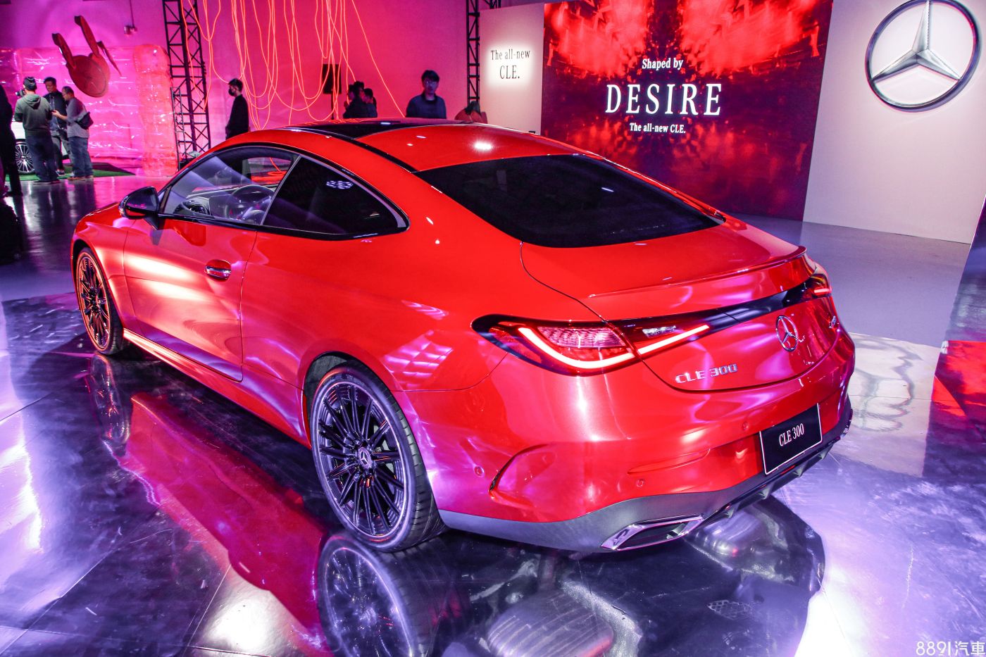 CLE尺碼與前代雙門E-Class相當,造型則融入C-Class元素,外型設計立體、富肌肉感,國內針對非AMG車型,均標配AMG Line運動化套件,具備自動光型遮蔽的多光束LED頭燈、鴨尾尾翼和全景天窗,則標配於CLE 300和AMG車型上。