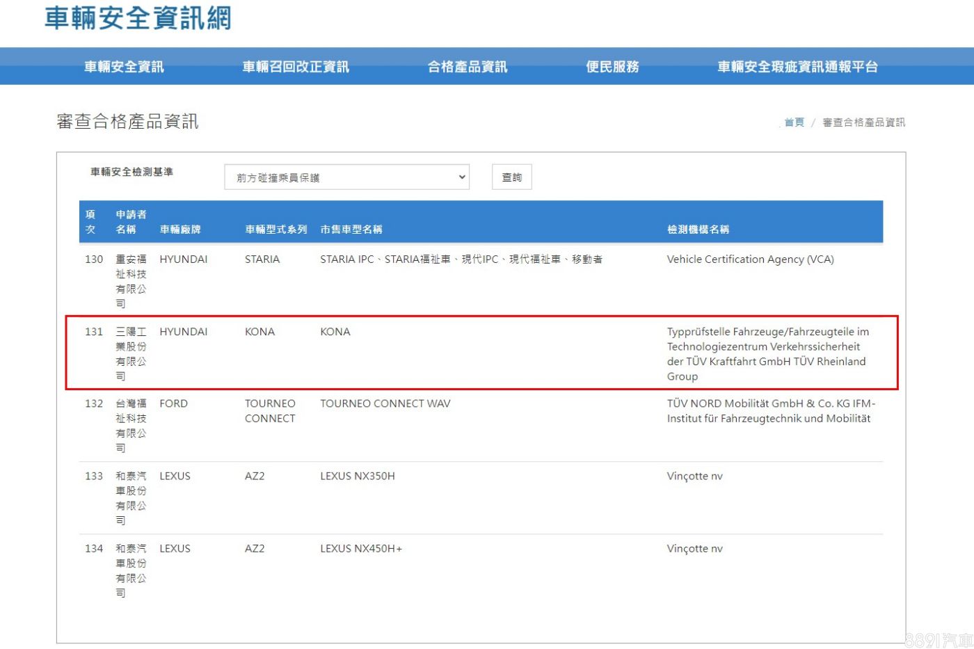 車安網稍早更新了車輛安全檢測合格產品資訊,新一波登錄在名單上的合格車款,除了有現代Staria、福特旅玩家、剛上市的新年式Lexus NX外,國內尚未開賣的新一代現代Kona也現身其中。