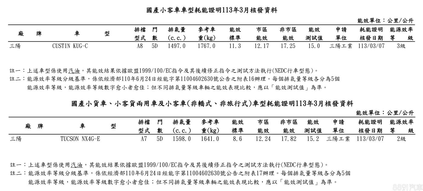2024年3月能源局能耗資訊於稍早公布,打破了兩個月的寂靜,今年終於首度有國產車款登錄。Hyundai在該月送測了日前剛上市的新年式「Custin」國產MPV外,一款中型休旅「Tucson」也現身資料中。