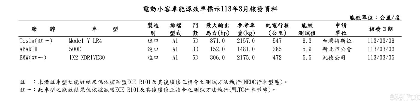 當月另有三款電動車取得認證,當中包含國內最暢銷的純電車款Tesla Model Y,為車系中的長程版本Long Range再度送驗,經認證在WLTC標準下具備547km的最大續航力,較原認證里程稍微多了5km。