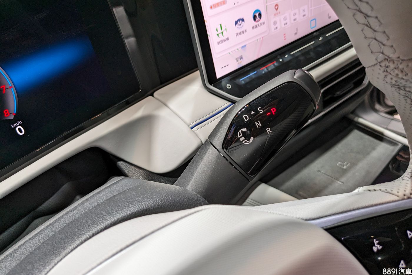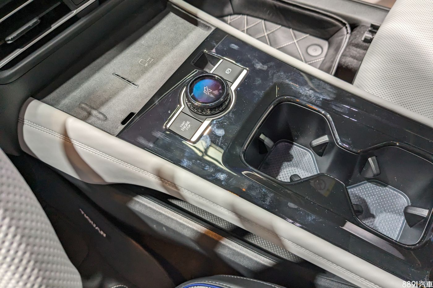 中央鞍座的旋鈕可進行包含駕駛模式、音量調整、多媒體及氣氛燈等操作,左側為引擎啟動鍵,前方則設置手機無線充電裝置。