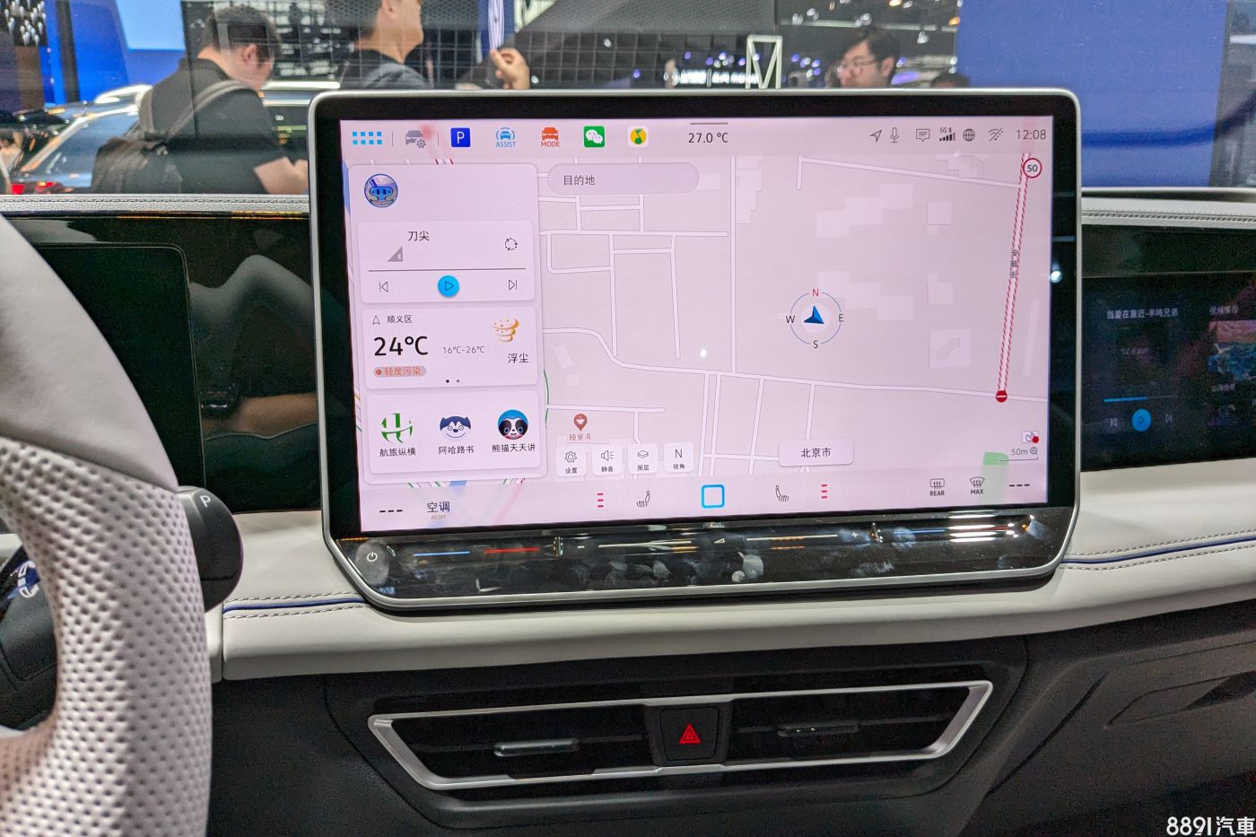 橫幅15吋螢幕支援分割畫面、語音助理和手機無線連結、導航等,螢幕上方為快捷鍵,下方則整合空調、座椅加熱等功能。
