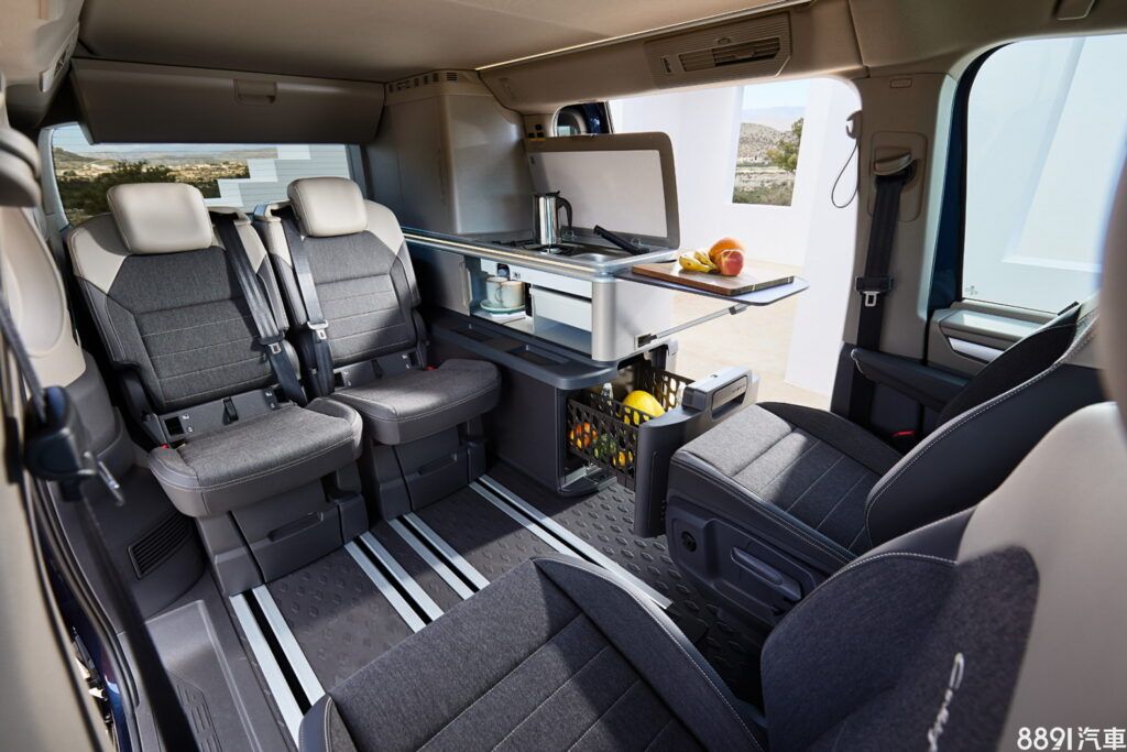 Beach、Beach Tour為6人座設定,較為高階的Beach Camper則為5人座,在後方配有迷你活動式廚房,有單口爐、置物收納機能,也配有單顆40Ah露營電池供電,駐車時空調使用無虞。