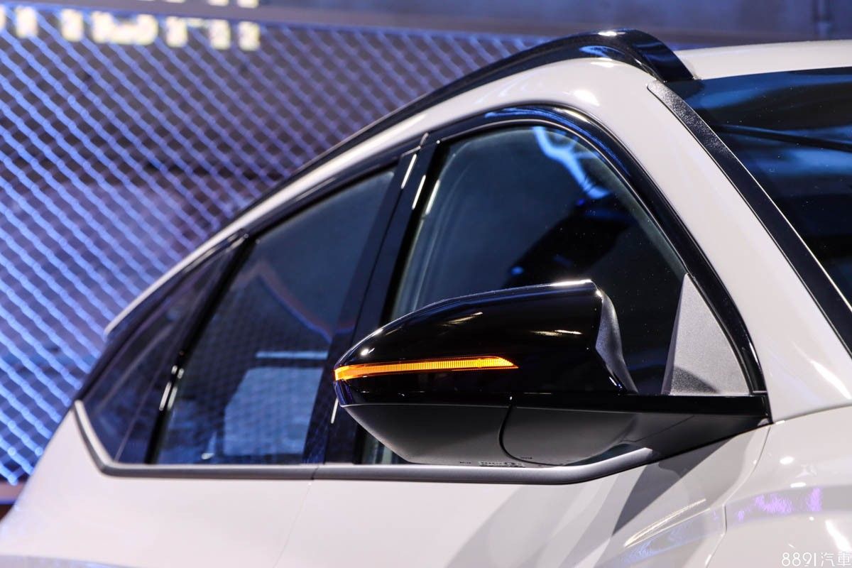 細節處如車外後視鏡蓋、側裙,窗框同樣採用黑色塗裝。