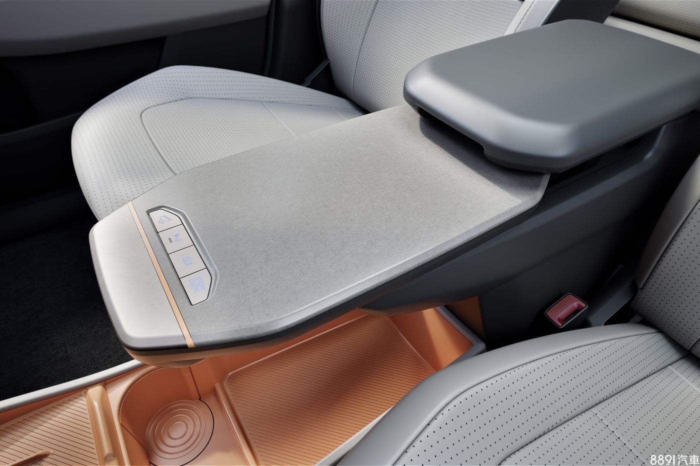 中央扶手前端具備可伸縮的控制板,嵌有Auto Hold、陡坡緩降和停車輔助功能的按鍵外,拉開後亦可作為小桌子使用,扶手底端則設計有杯架和置物槽,讓小車也能有豐富的收納空間。