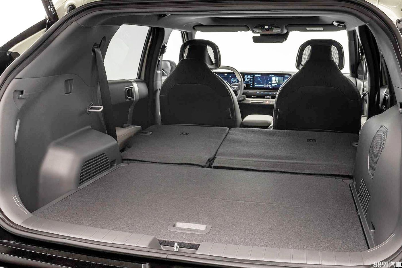 EV3在車頭處設計了25L的前置物廂,至於後廂的置物空間,在標準五座配置下具備460L,不過後排傾倒後的容積表現則未獲公布。