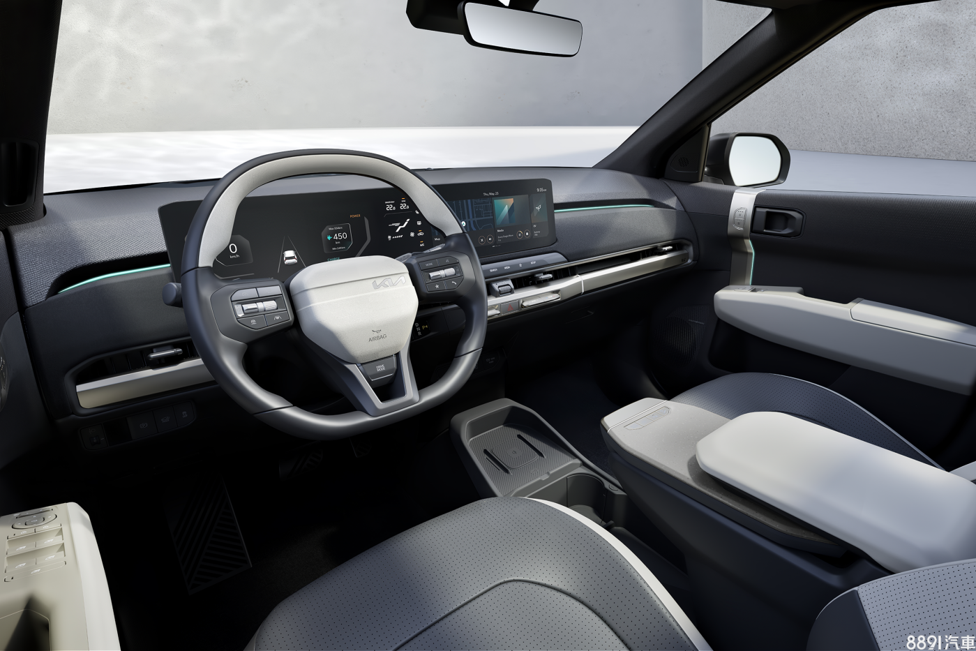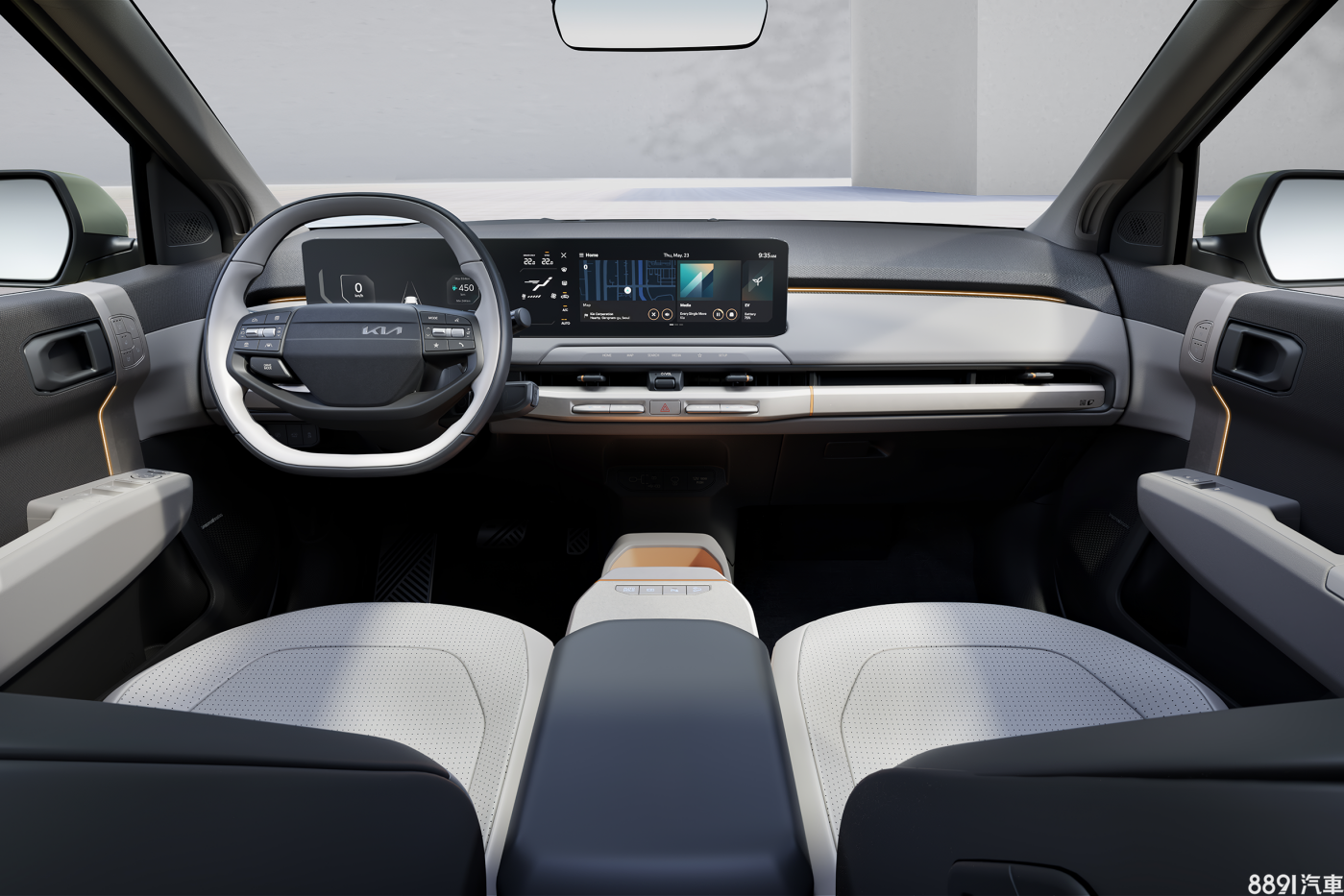 示範款配合內裝設計,座椅也採多色混搭風格,椅面則採皮質包覆。原廠並強調,基於環保永續的理念,不只椅面皮料、頂篷和踏墊運用回收寶特瓶的再生素材,車漆漆料也加入環保成分,甚至車外防刮塑料使用的原料,也包含舊Kia車款回收後再製的材料。