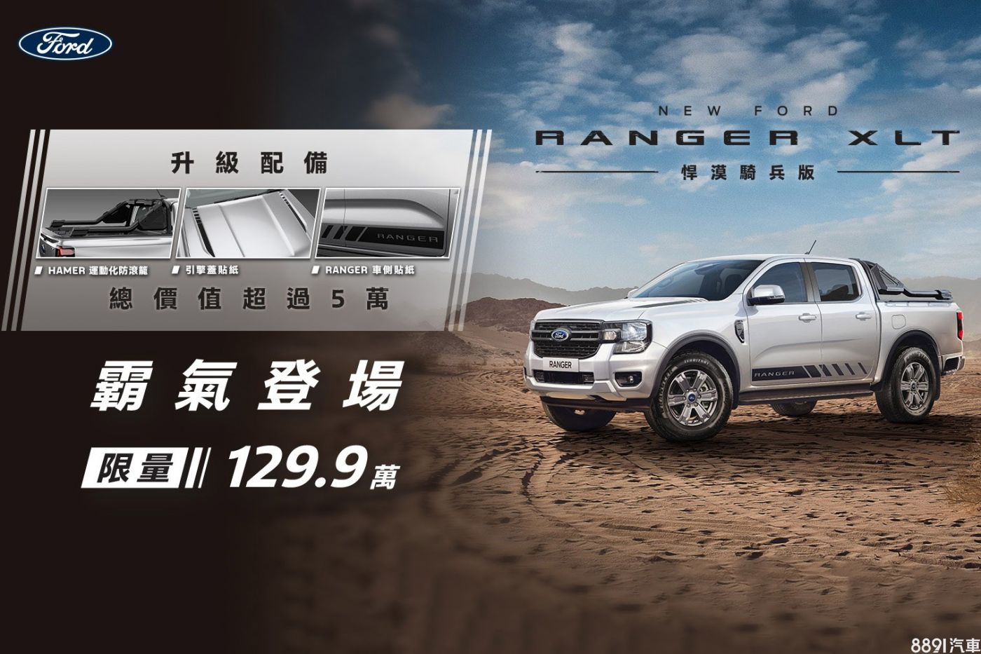 先前推出的Ford Ranger XLT悍漠騎兵版由於頗受好評,原廠也再度追加配額,升級原廠配件包含Hamer運動化後斗防滾籠、引擎蓋及車側之專屬車貼,總價值超過5萬,只要129.9萬。