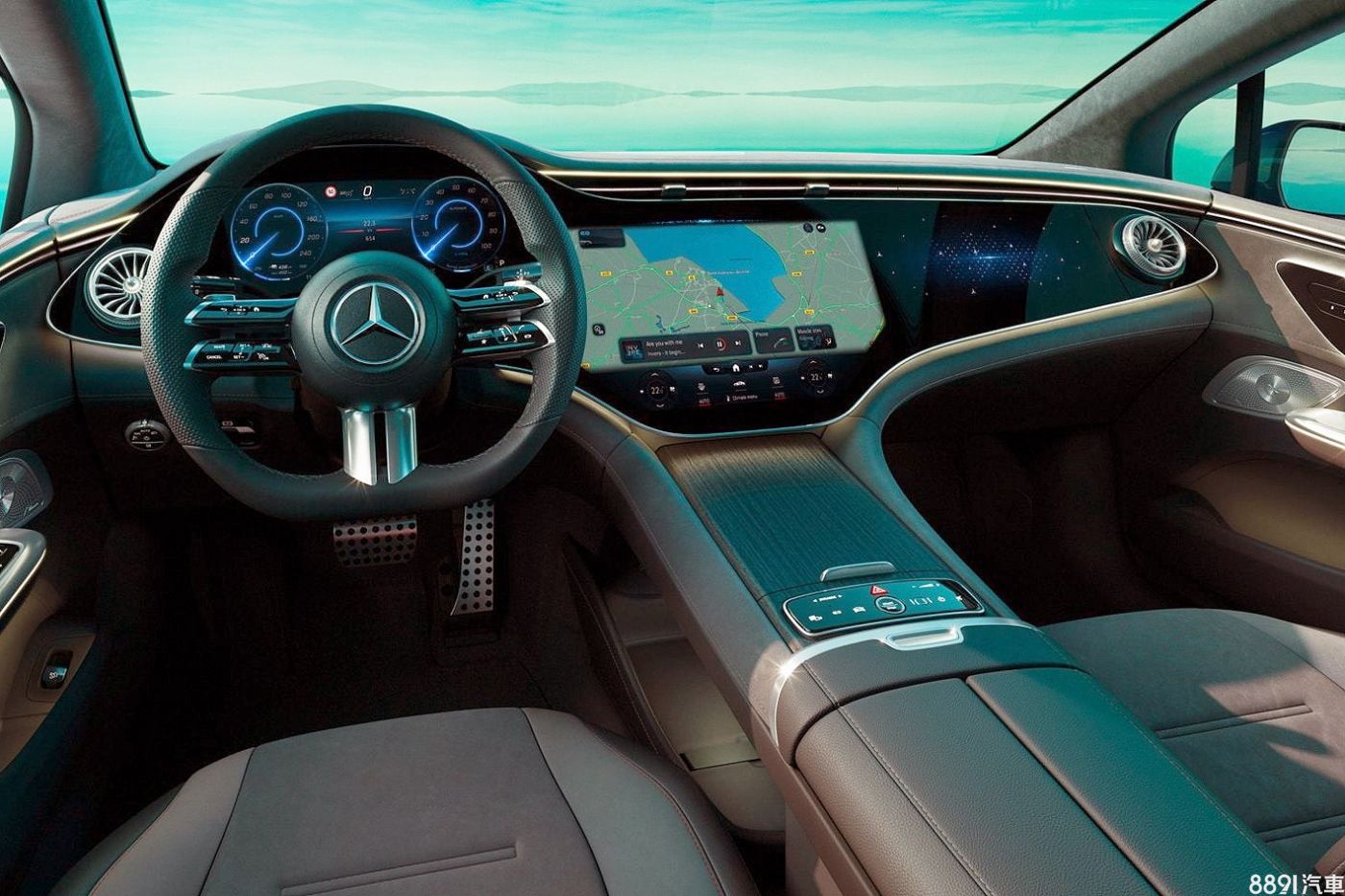 內裝部分,透過狀似蜻蜓的平底方向盤、AMG腳踏墊、皮質麂皮混拼包覆的跑車化座椅等以往EQE 300所沒有的配備,都讓EQE 350+的座艙更貼近運動化的主題風格。