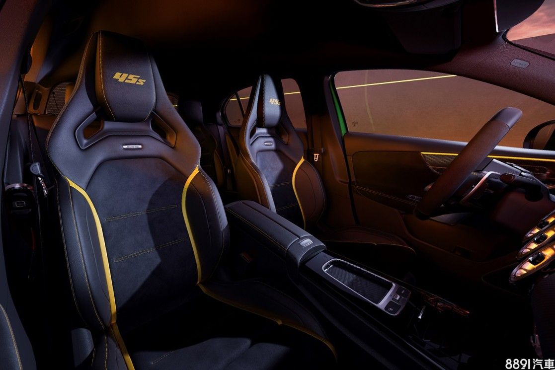 選配該套件,外觀將搭配消光綠塗裝,搭配專屬車身貼紙,除了環車黑化套件和鍍鉻門把外,還有專屬鋁圈和更競技化的空力套件來為風格加分。內裝配合主題,雙前座換上AMG賽車椅外,也帶來多項黃色縫線的套件專屬部品。