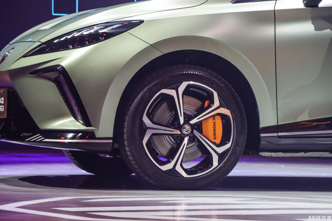 XPower版本同樣搭載18吋鋁圈,雙色切削鑽石造型,搭配專屬橘色Continental煞車卡鉗,視覺上相當有張力,配胎同為235/45R18普利司通T005 EV電動車專用胎。